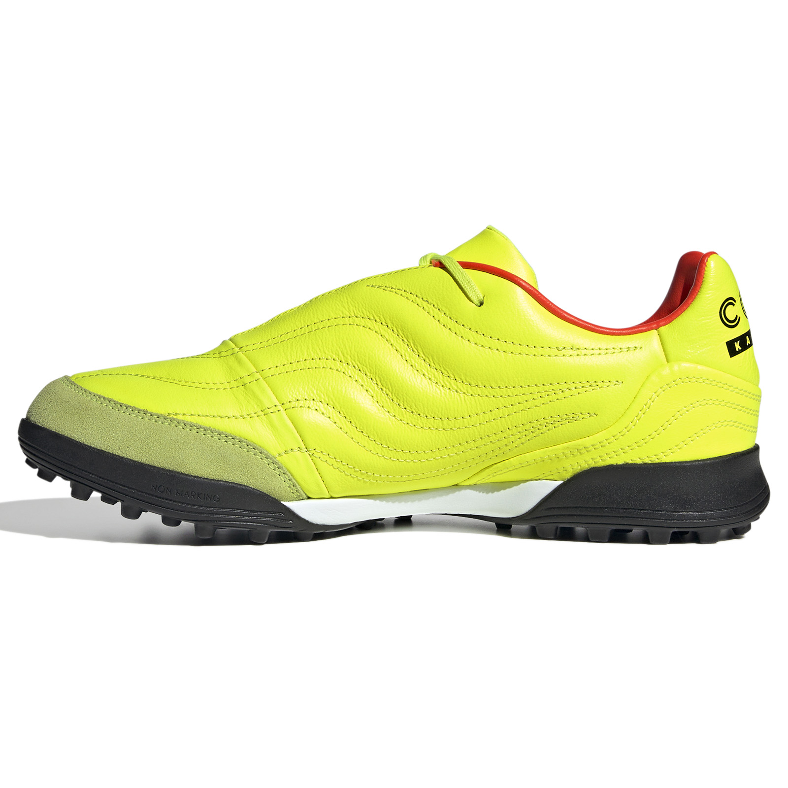 The superior and other-worldly touch, governance and feel you get with the classic Copa, now redesigned and updated with the adidas Copa Kapitan.2 Turf Soccer Shoes (side Solar Yellow/Core Black/Solar Red.) Premium forefoot K-leather for soft, supple comfort and touch on the ball. Combined with a turf outsole built for grip and governance, these turf shoes are certain to excel on matchday. The Copa Kapitan.2 Turf offers an unsurpassed capability, classic style and new innovation for the most demanding player!