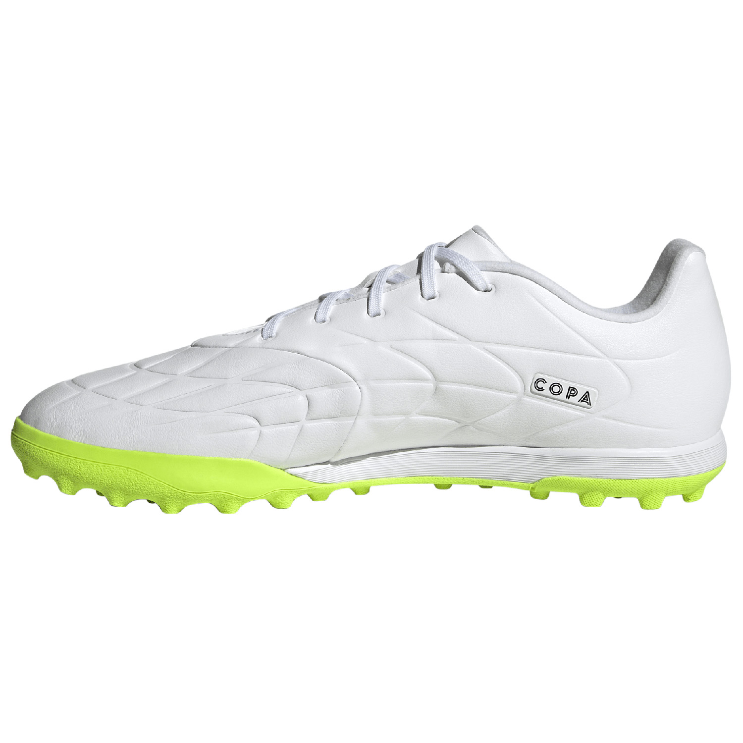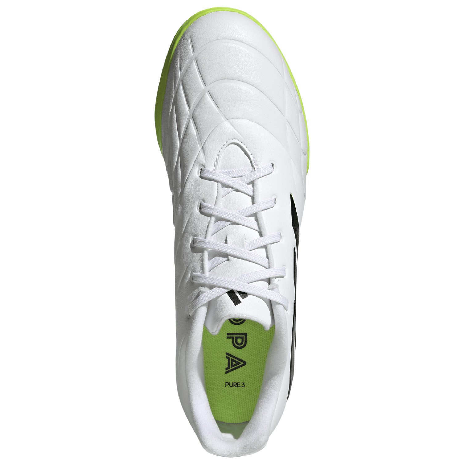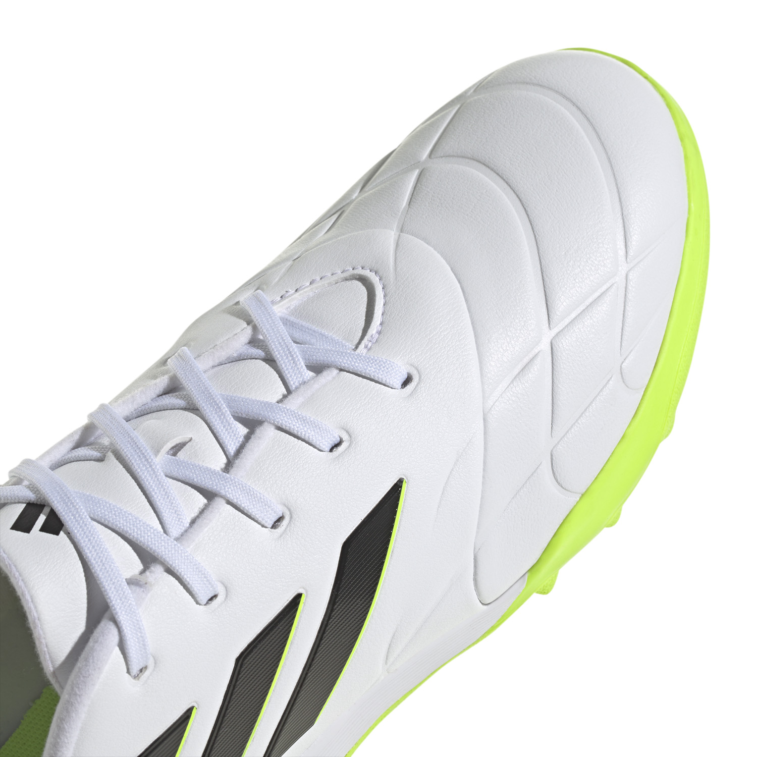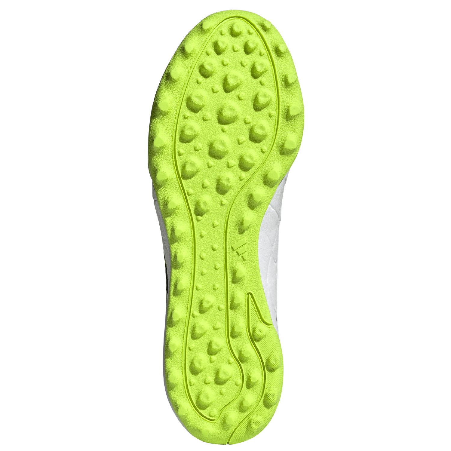 With the look and spirit of the vintage Copa, welcome the redesigned adidas Copa Pure.3 Turf Soccer Shoes (Cloud White/Core Black/Lucid Lemon.) Premium quilted leather forefoot for soft comfort and an excellent touch on the ball. Combined with a turf-gripping lug rubber outsole built for grip and governance, these soccer turf shoes are certain to excel on matchday. These high level football turf boots offer durability, vintage layout and new innovation for the most demanding competitor!
