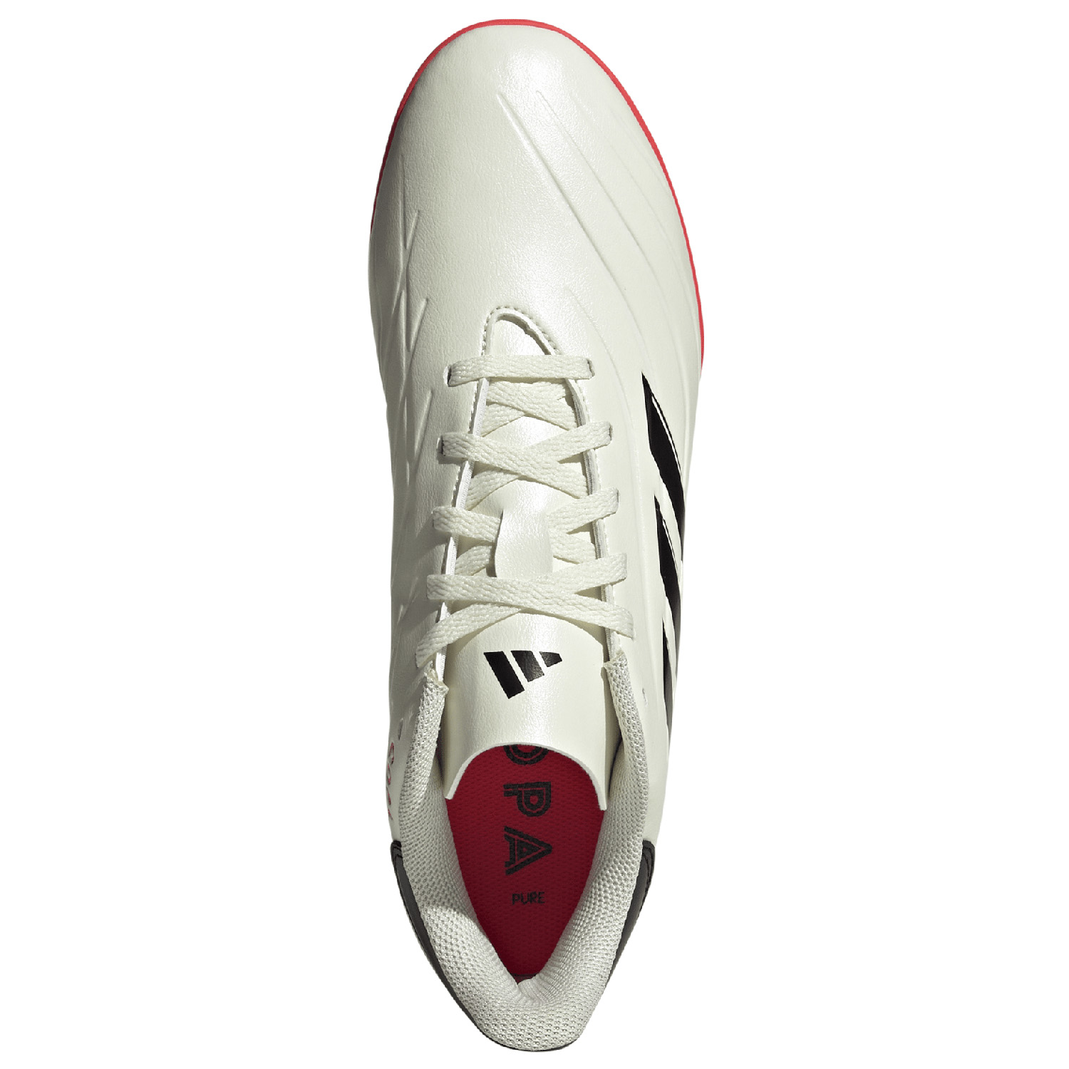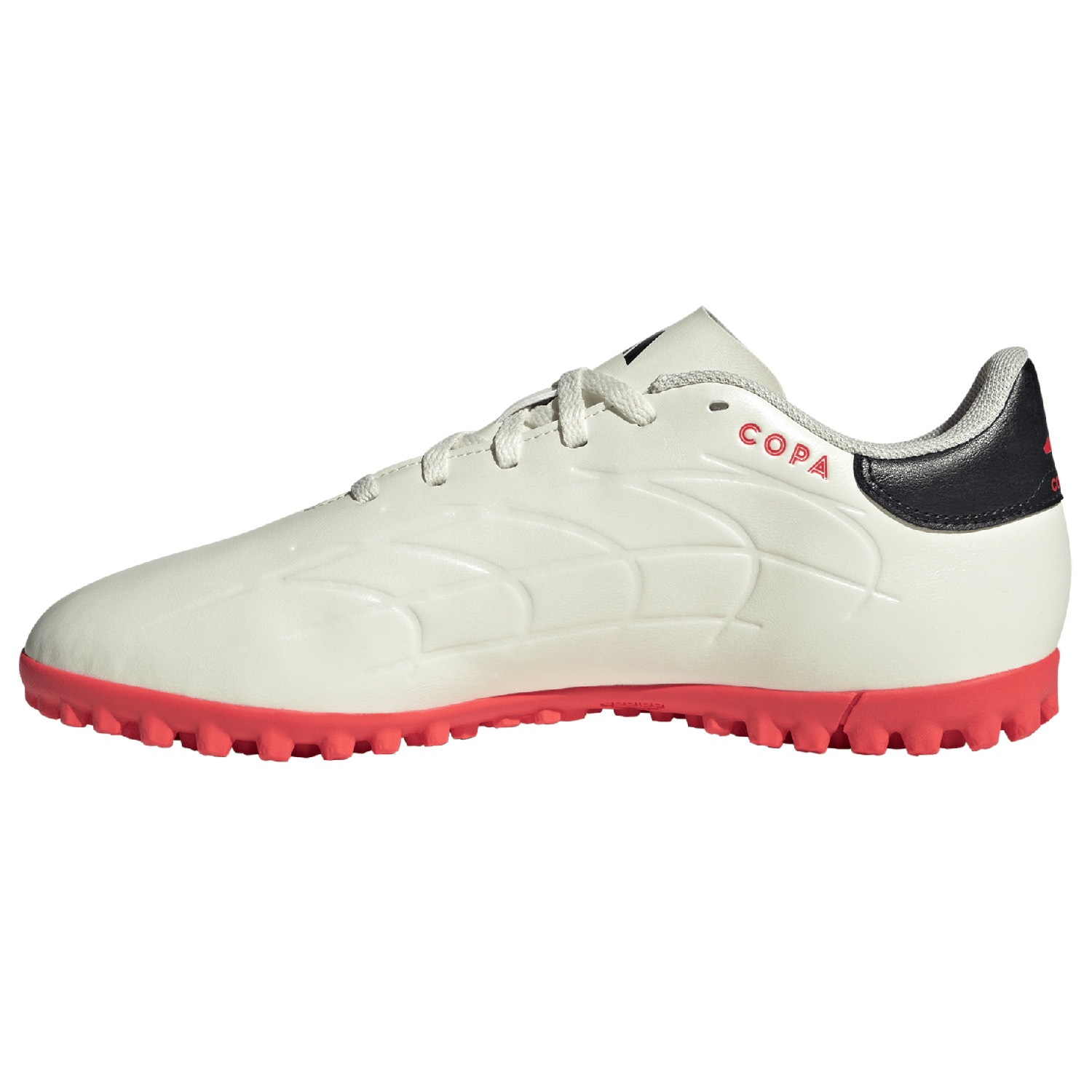 With the look and spirit of the iconic Copa, welcome the redesigned adidas Copa Pure II Club Turf Soccer Shoes (Off White/Core Black/Solar Red.) Premium soft, synthetic upper for comfort and quality touch on the ball. Combined with a turf-gripping lug rubber outsole built for grip and governance, these soccer turf shoes are certain to excel on matchday. These high level football turf boots offer durability, iconic layout and up-to-date innovation for the most demanding athlete!