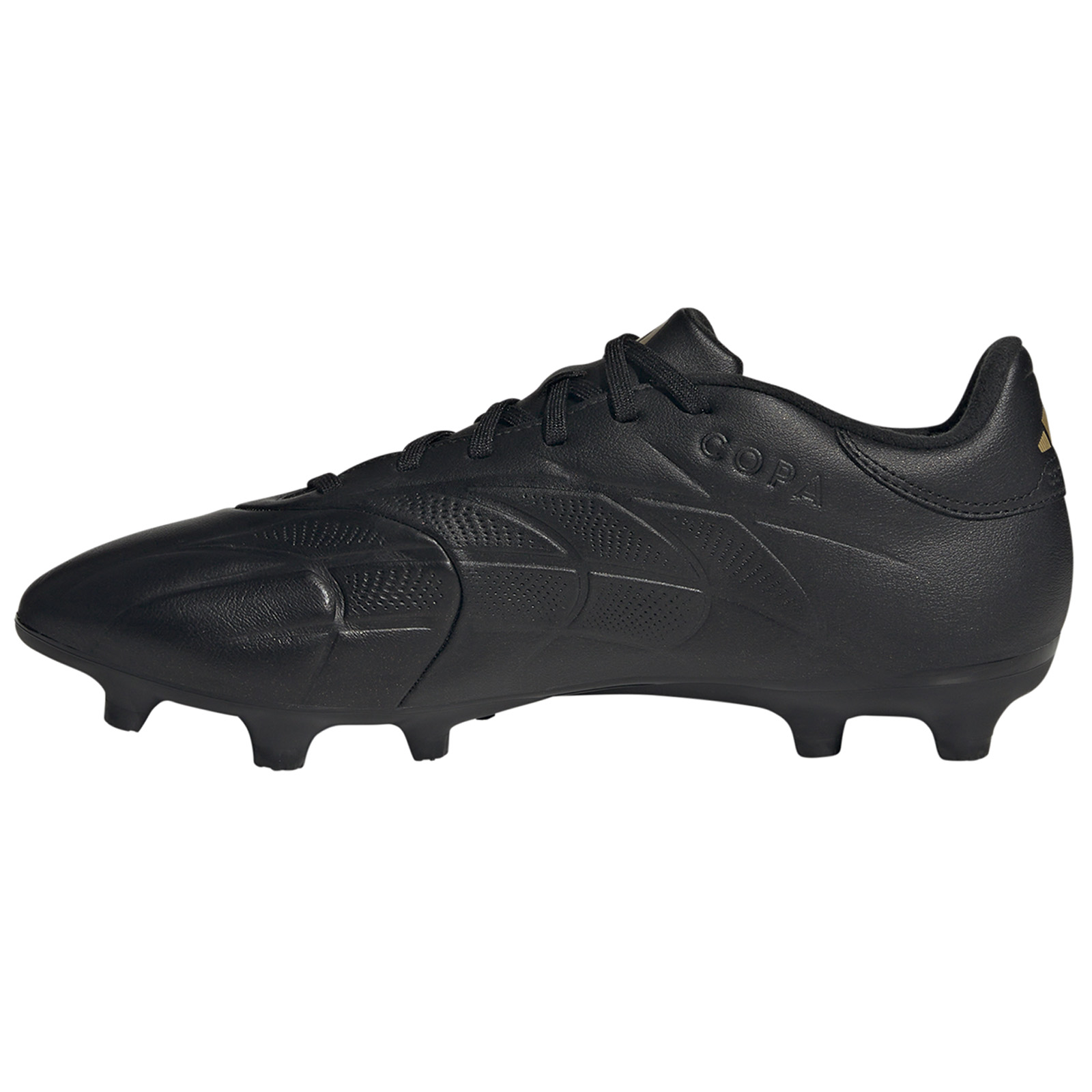 With the look and spirit of the classic Copa, welcome the redesigned adidas Copa Pure II League FG Soccer Shoes (Core Black/Carbon/Gold Metallic). Premium soft, natural leather upper forefoot for comfort and quality touch on the ball. Combined with a grass-gripping firm ground outsole built for grip and governance, these soccer cleats are certain to excel on matchday. These elite level football boots offer an unsurpassed efficiency, classic pattern and new innovation for the most demanding sportsman!