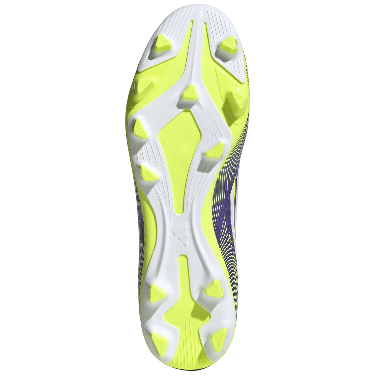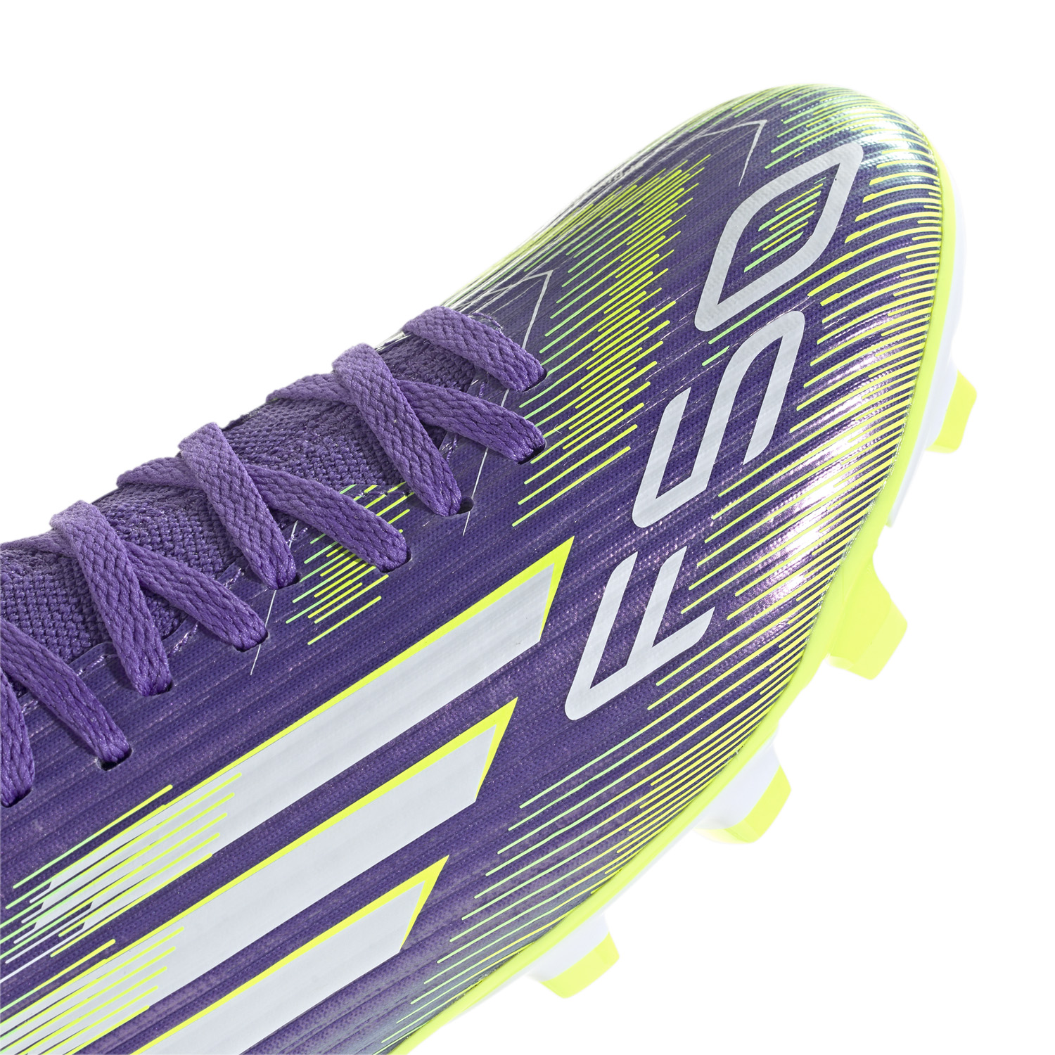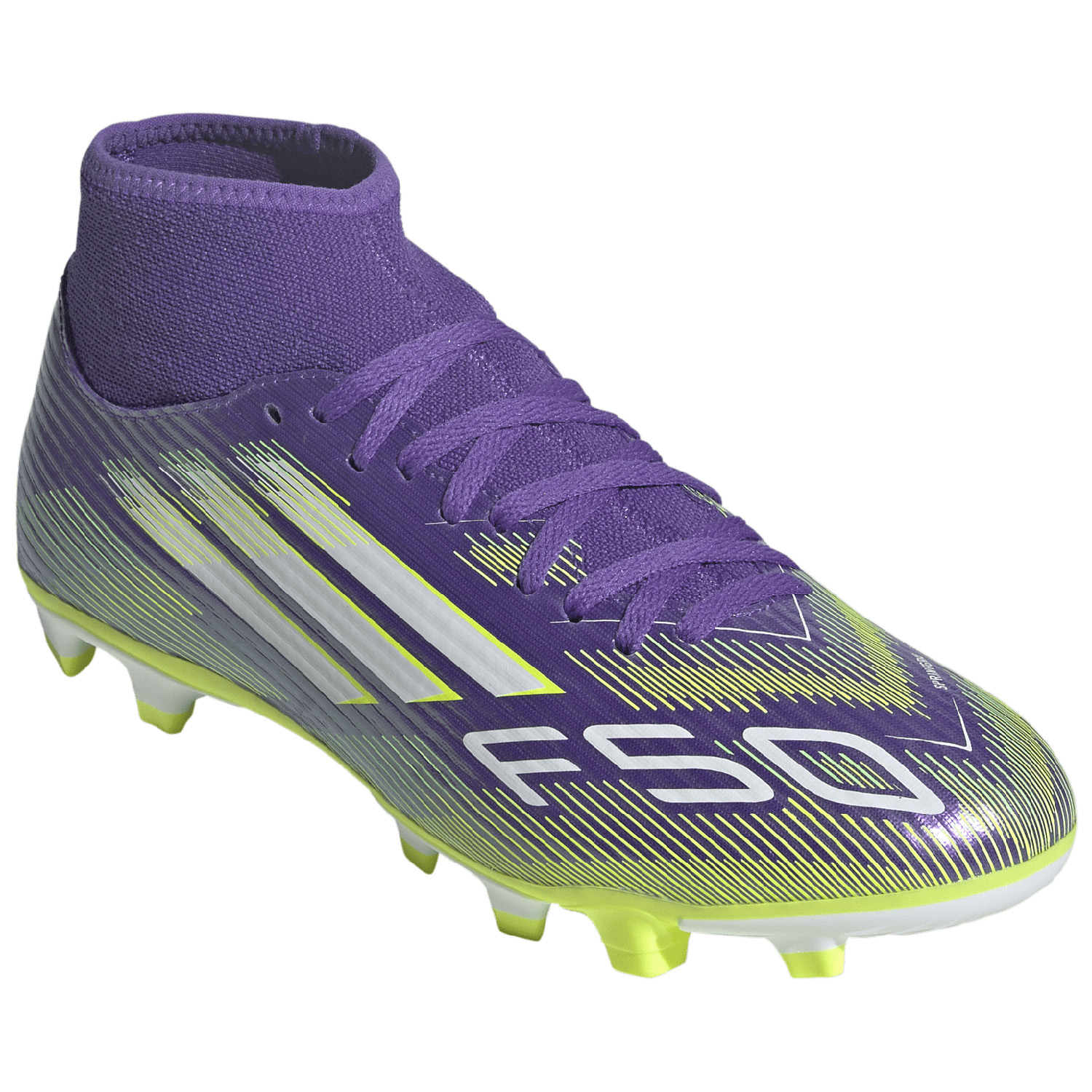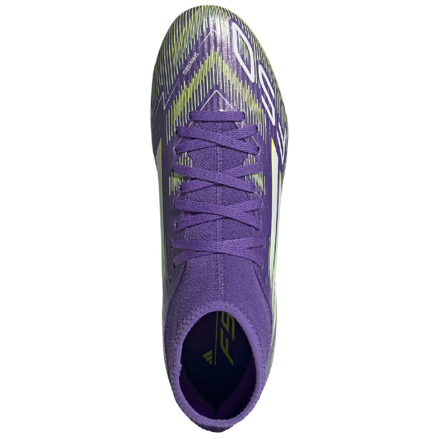 Welcome back an old friend with an innovative new structure and unsurpassed performance. The adidas F50 Club Mid Firm Ground Soccer Cleats (Purple Rush/Football White/Lucid Lemon) sit on a full-length Sprintshell 360 outsole which offers stability to cut, swerve and score on firm ground. The Fibertouch upper includes Sprintweb 3D texturing for rapid dribbling touch.