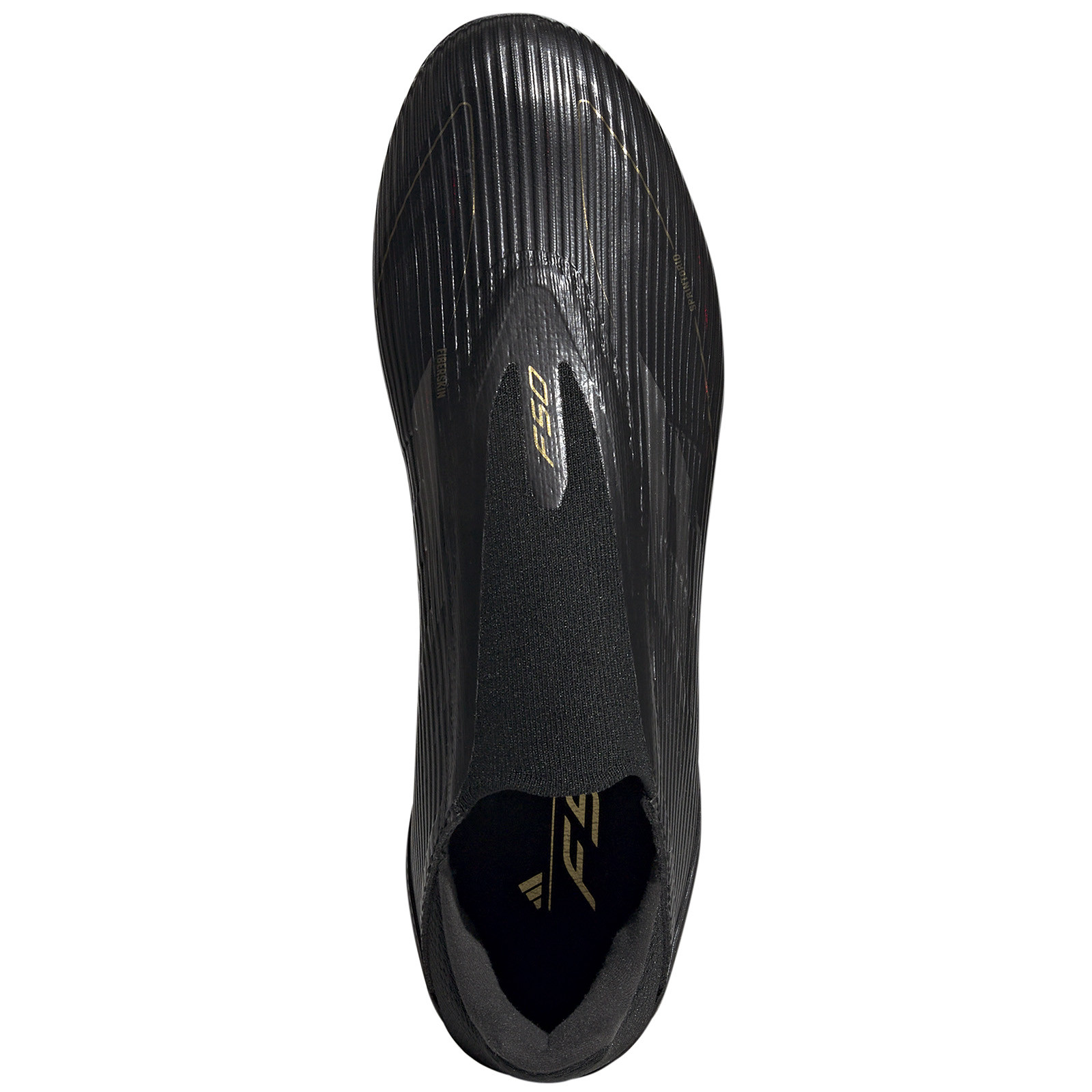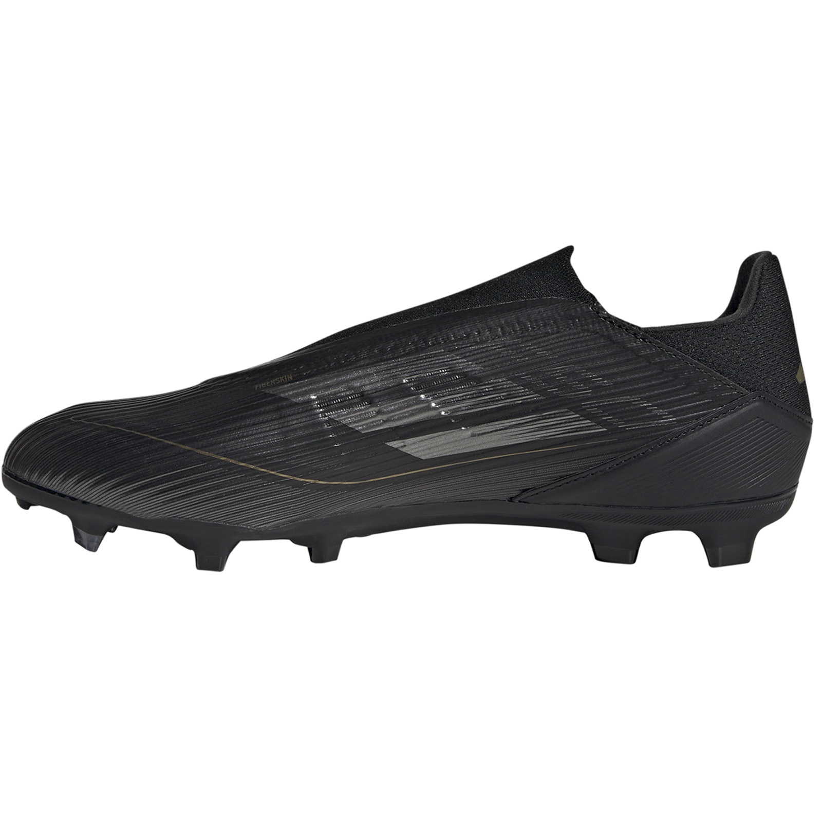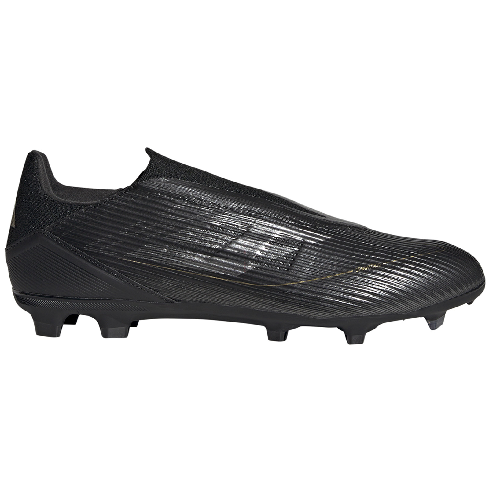 Welcome back an old friend with an creative new layout and unsurpassed performance. The adidas F50 League Laceless FG Soccer Shoes (Core Black/Iron Metallic/Gold Metallic) sit on a full-length Sprintshell 360 outsole which offers stability to cut, swerve and score on firm ground. The Fibertouch upper includes Sprintweb 3D texturing for rapid dribbling touch.