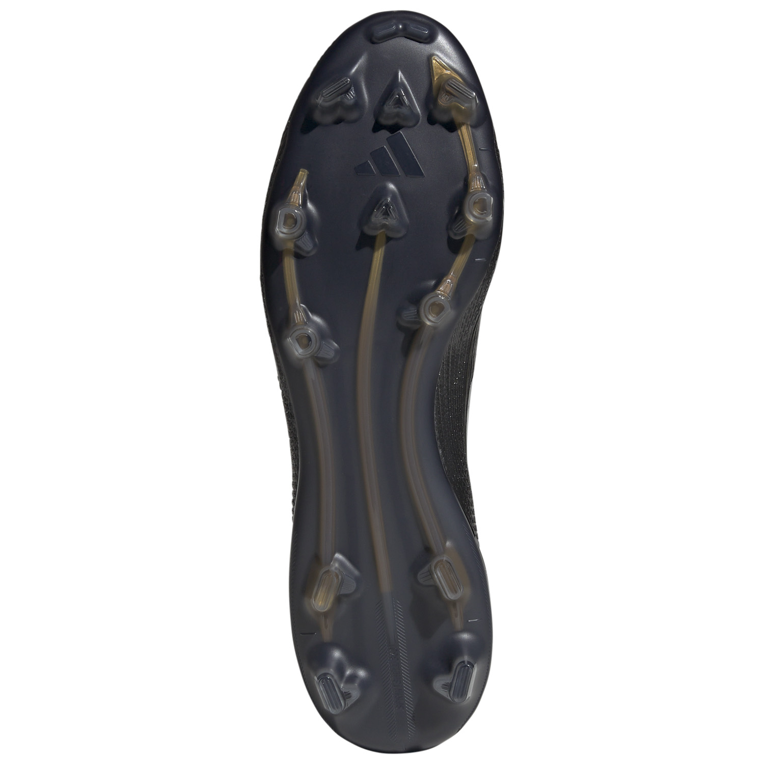 Welcome back an old friend with an innovative new pattern and unsurpassed performance. The adidas F50 Pro Firm Ground Soccer Cleats (Core Black/Iron Metallic/Gold Metallic) sit on a full-length Sprintshell 360 outsole which offers stability to cut, swerve and score on firm ground. The Fibertouch upper includes Sprintweb 3D texturing for rapid dribbling touch.