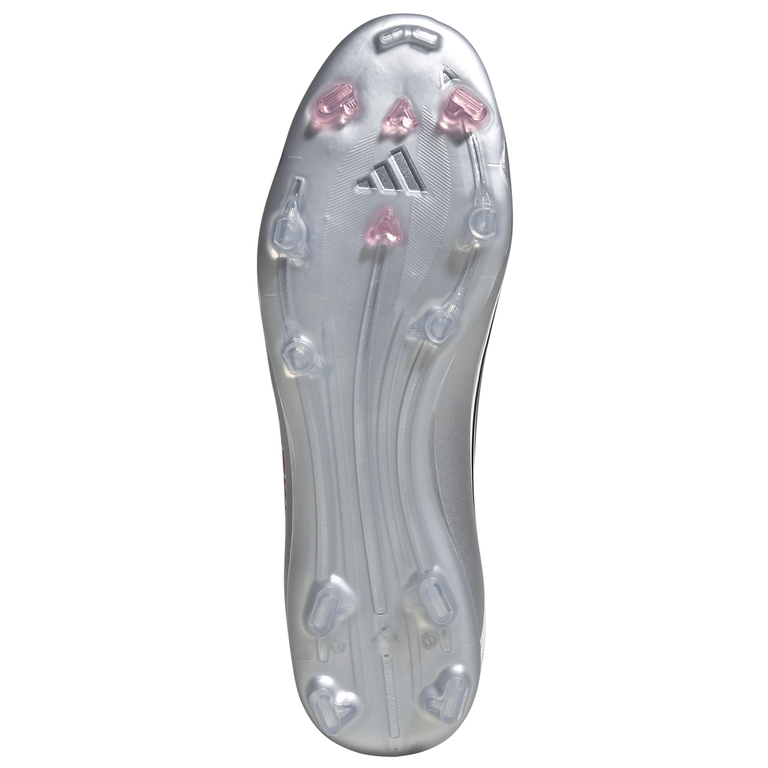 Precision construction allows power transfer for the perfect strike and ball command in the creative adidas Lionel Messi F50 League Firm Gound Soccer Cleats (Cloud White/Lucid Red/Silver Metallic). Premium snug HybridTouch upper allows an amazing touch on the ball. Combined with a grass-gripping firm ground outsole built for grip and command, these soccer cleats are certain to excel on matchday. These impressive football boots offer exceptional efficiency and current style for the most demanding player!