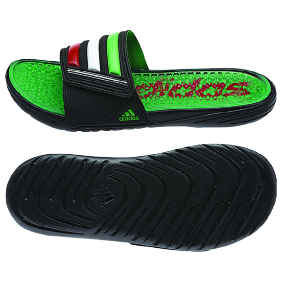 Just in time for the World contest 2014 this summer, the adidas Mexico Retrossage Soccer Sandal / Slide is the perfect choice on those warm summer days. This pleasant slip-on sandal contains a tough rubber outsole and unique Mexico graphics.