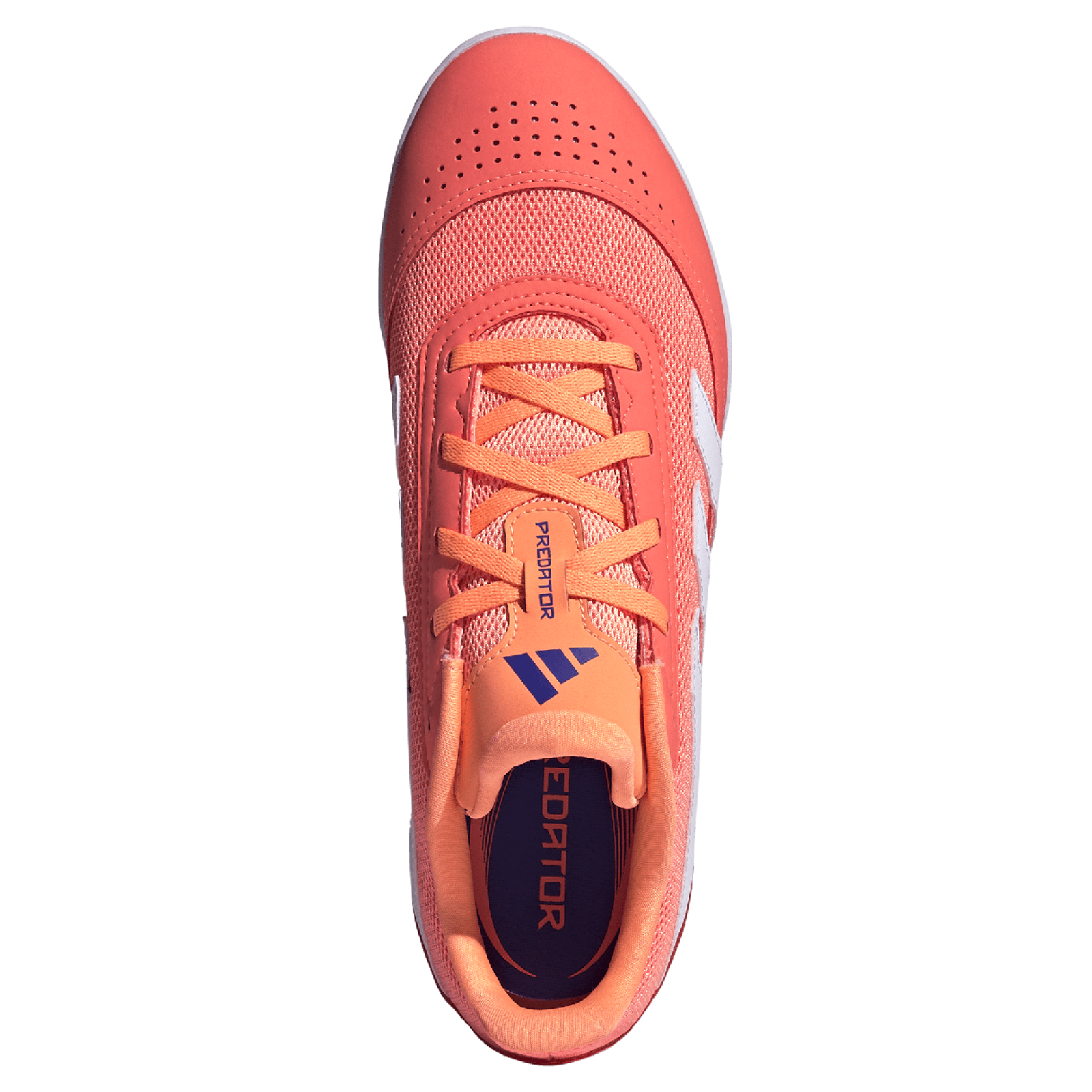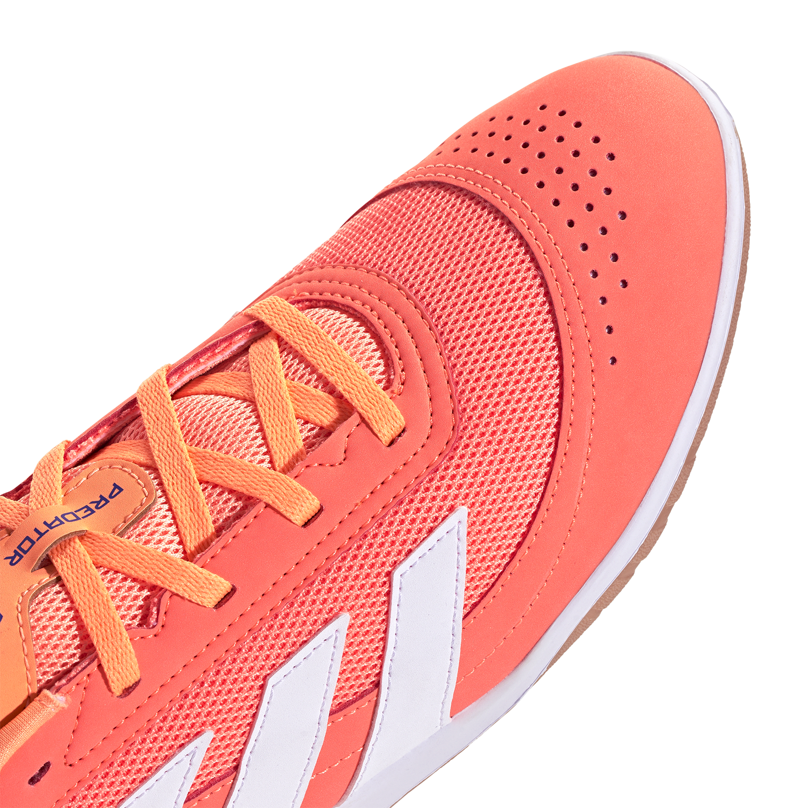 Slam the door on your marker in the blink of an eye. Made for the fast-moving indoor fixture, the adidas Predator Club Sala Indoor Soccer Shoes (Signal Coral/Cloud White/Beam Orange) sit on a non-marking rubber outsole made for flat surfaces. The durable suede and mesh upper stands up to bumps and scrapes, while it keeps fast-moving feet cool during the heat of the fixture.
