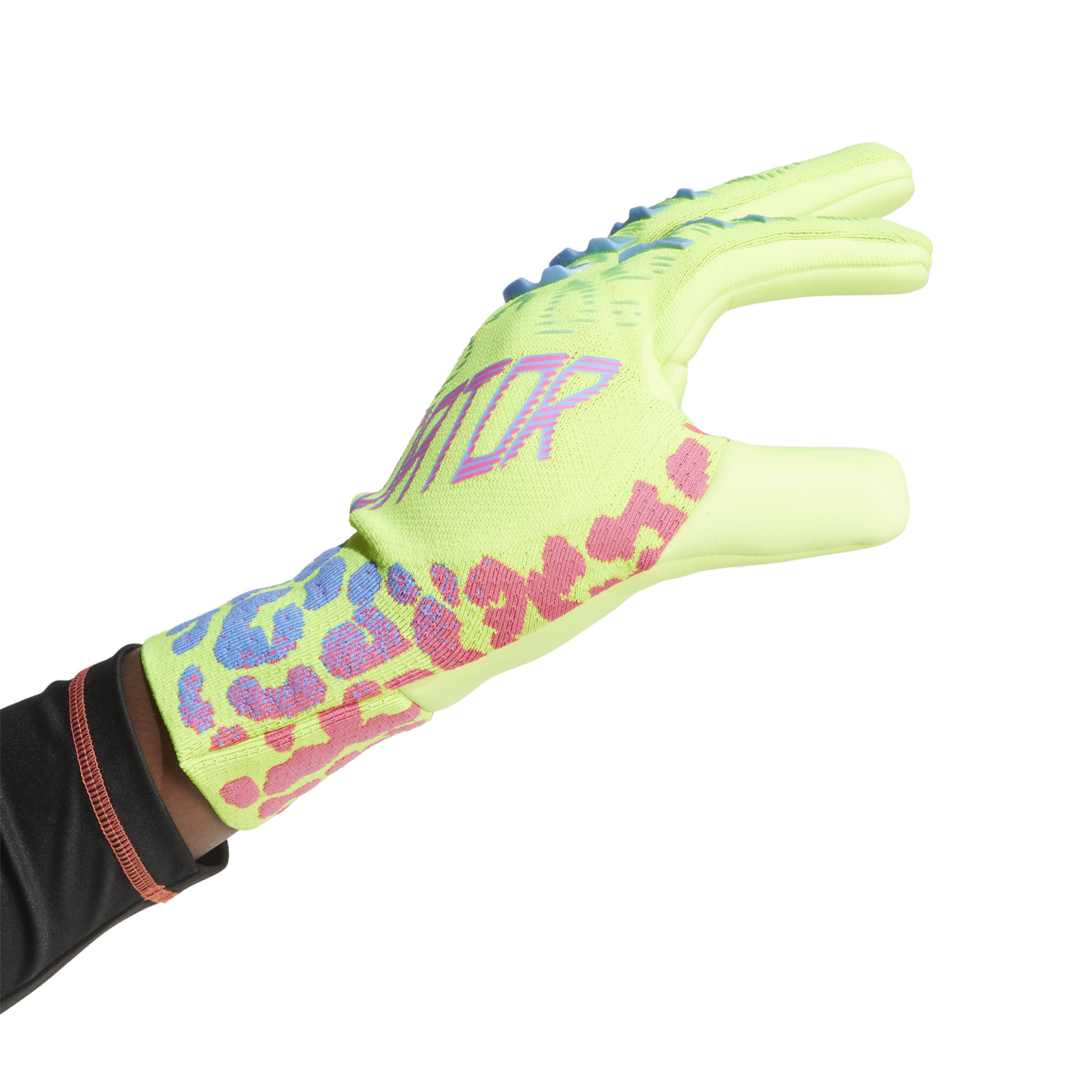 Take regulation in your box on your turf in the adidas Predator GL Pro Goalie Gloves (Lucid Lemon/Lucid Pink). Command the goal with confidence in these adidas Predator Pro goalkeeper gloves. made for elite capability, they element grippy URG 2.0 latex palms and a snug negative finger cut for exceptional regulation. The adaptive knit backhand, enhanced with silicone elements, ensures precise punching, while the strapless entry offers a seamless, natural fit around the wrist!