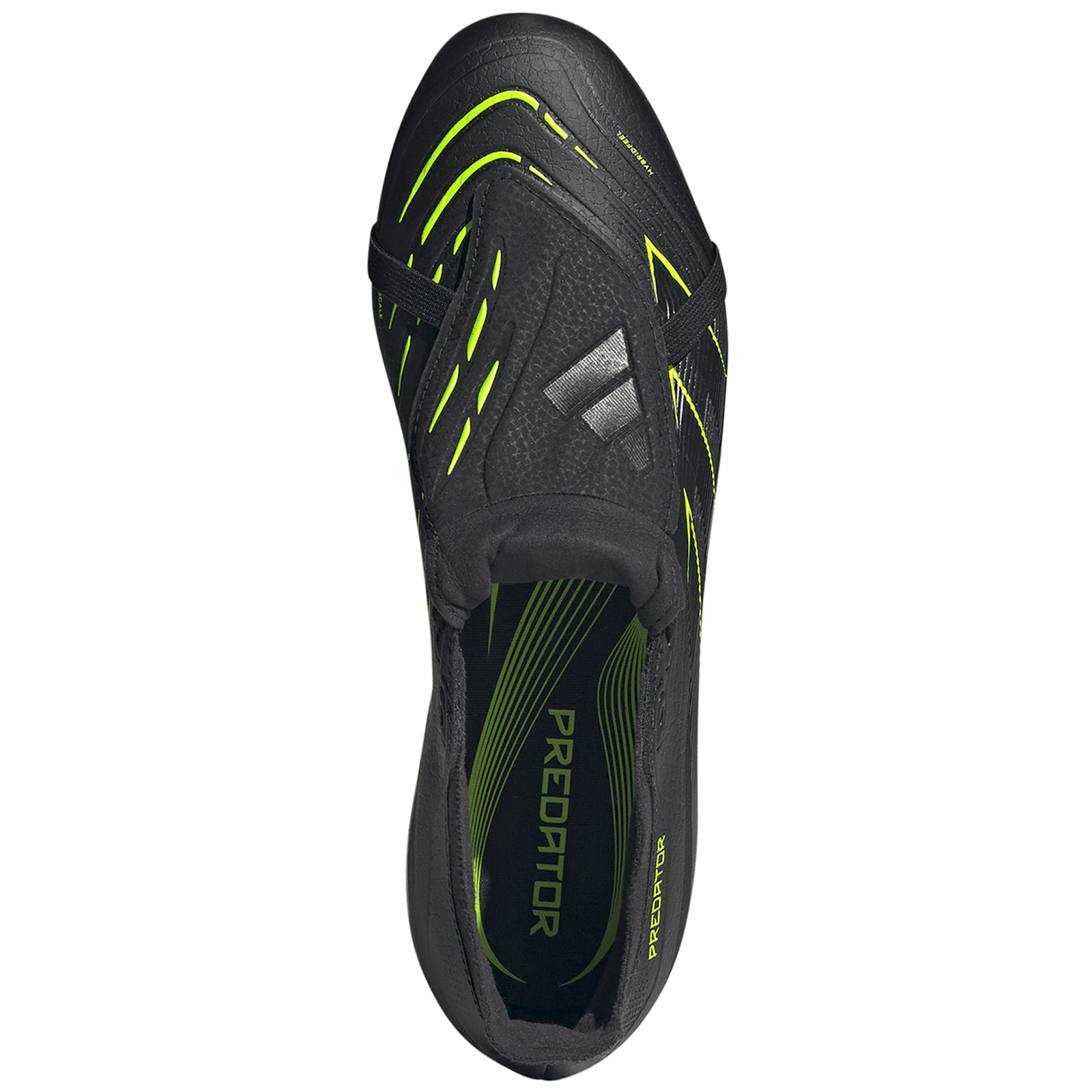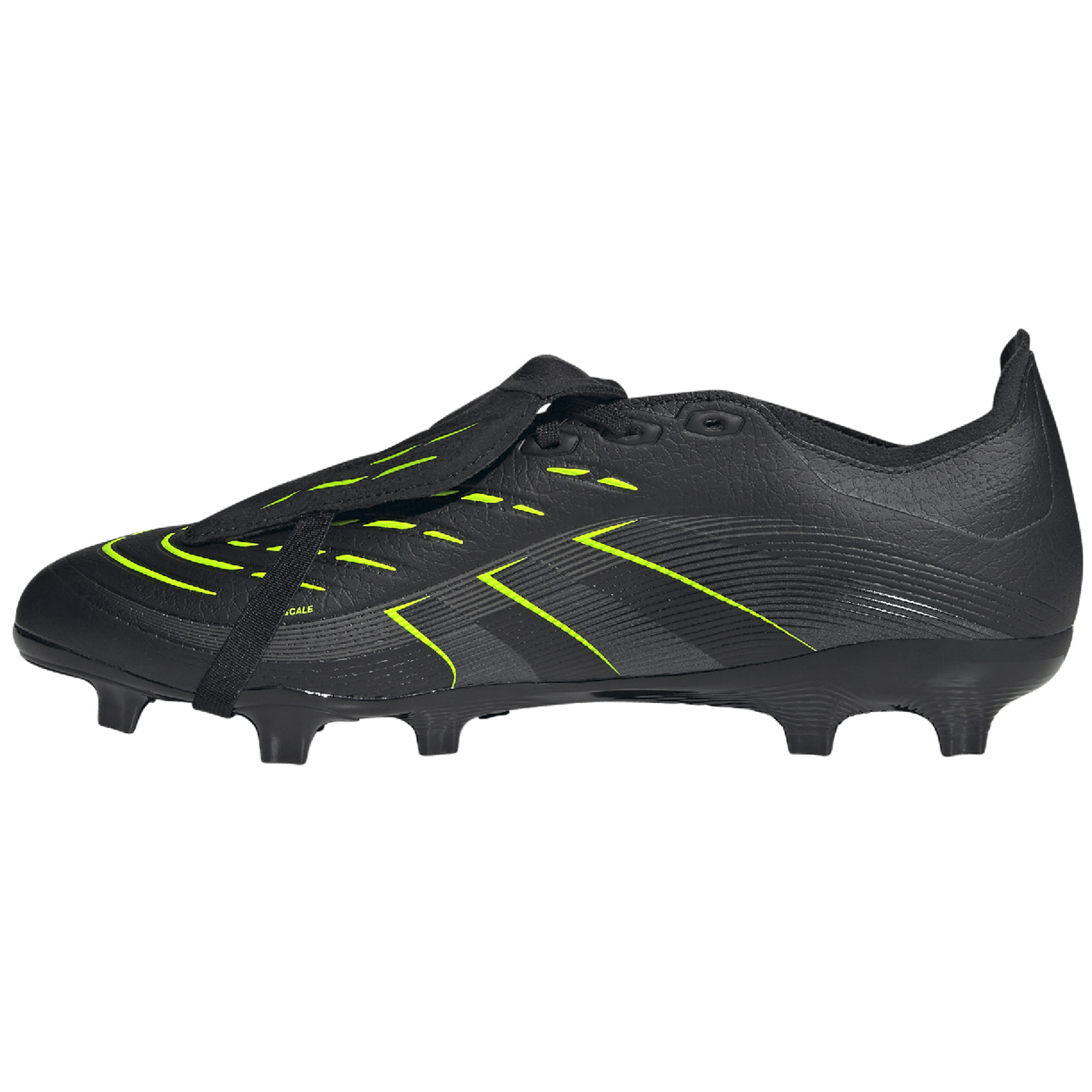Target perfection and slam the door on your opponent in the blink of an eye. The adidas Predator League Fold-over Tongue Firm Ground Soccer Shoes (Core Black/Carbon/Lucid Lemon) sit on a full-length Controlplate 2.0 outsole which offer stability to cut, swerve and score on firm ground. The sturdy Hybridfeel upper is optimized for accuracy with 3D texture and grippy Strikescale fins.