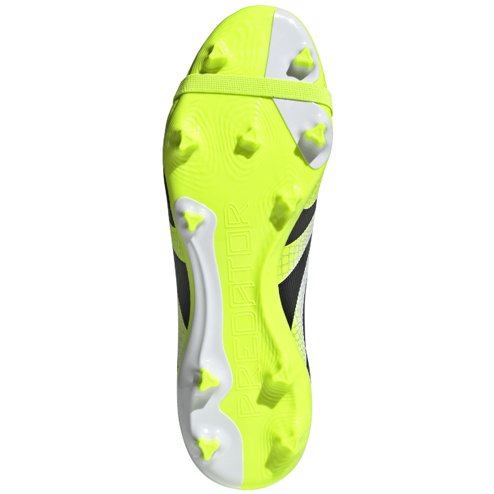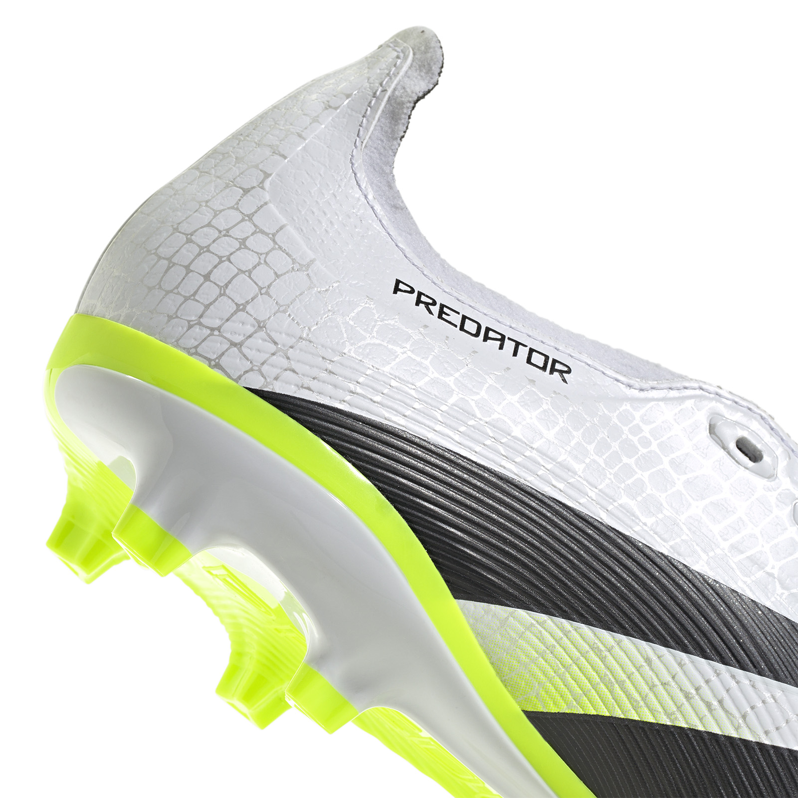 Target perfection and slam the door on your opponent in the blink of an eye. The adidas Predator League Fold-over Tongue Firm Ground Soccer Shoes (Cloud White/Core Black/Lucid Lemon) sit on a full-length Controlplate 2.0 outsole which offer stability to cut, swerve and score on firm ground. The resilient Hybridfeel upper is optimized for accuracy with 3D texture and grippy Strikescale fins.