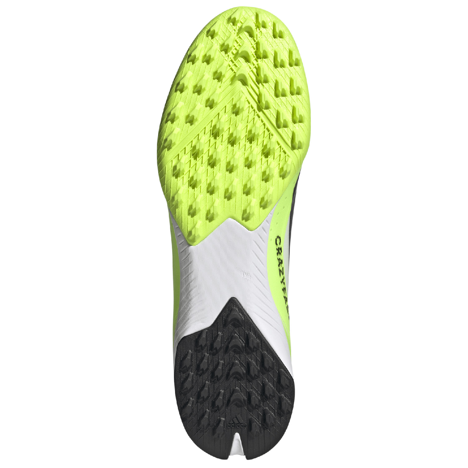Precision construction allows power transfer for the perfect strike and ball regulation in the creative adidas X CrazyFast.3 Turf Soccer Shoes (Football White/Core Black/Lucid Lemon.) Premium cozy mid-cut 3D textured textile upper allows an amazing touch on the ball. Combined with a turf-gripping outsole built for grip and regulation, these soccer turf shoes are certain to excel on matchday. These professional level football turf boots offer exceptional performance and contemporary pattern for the most demanding athlete!