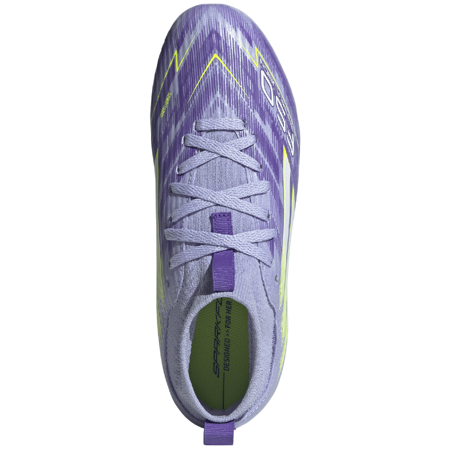 Welcome back a female-friendly version of an old friend with an innovative new structure and unsurpassed efficiency. Specifically made for the female soccer sportswoman, the adidas Youth F50 Sparkfusion League Firm Ground Soccer Shoes (Violet Tone/Lemon) sit on a full-length Sprintplate Fusion firm ground / artificial grass outsole which offers stability to cut, swerve and score on firm ground. The Fiberskin upper includes Sprintweb 3D texturing for rapid dribbling touch.