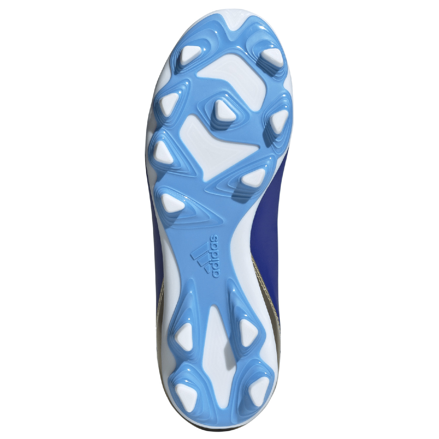 Customized with Lionel Messi details throughout, welcome the adidas Youth Lionel Messi X Crazyfast Club FxG Soccer Cleats (Lucid Blue/Blue Burst/Football White/Gold.) Premium soft, lightweight synthetic leather upper for comfort and quality touch on the ball. Combined with an abrasion-resistant outsole built for grip and command, these soccer shoes will excel on matchday.