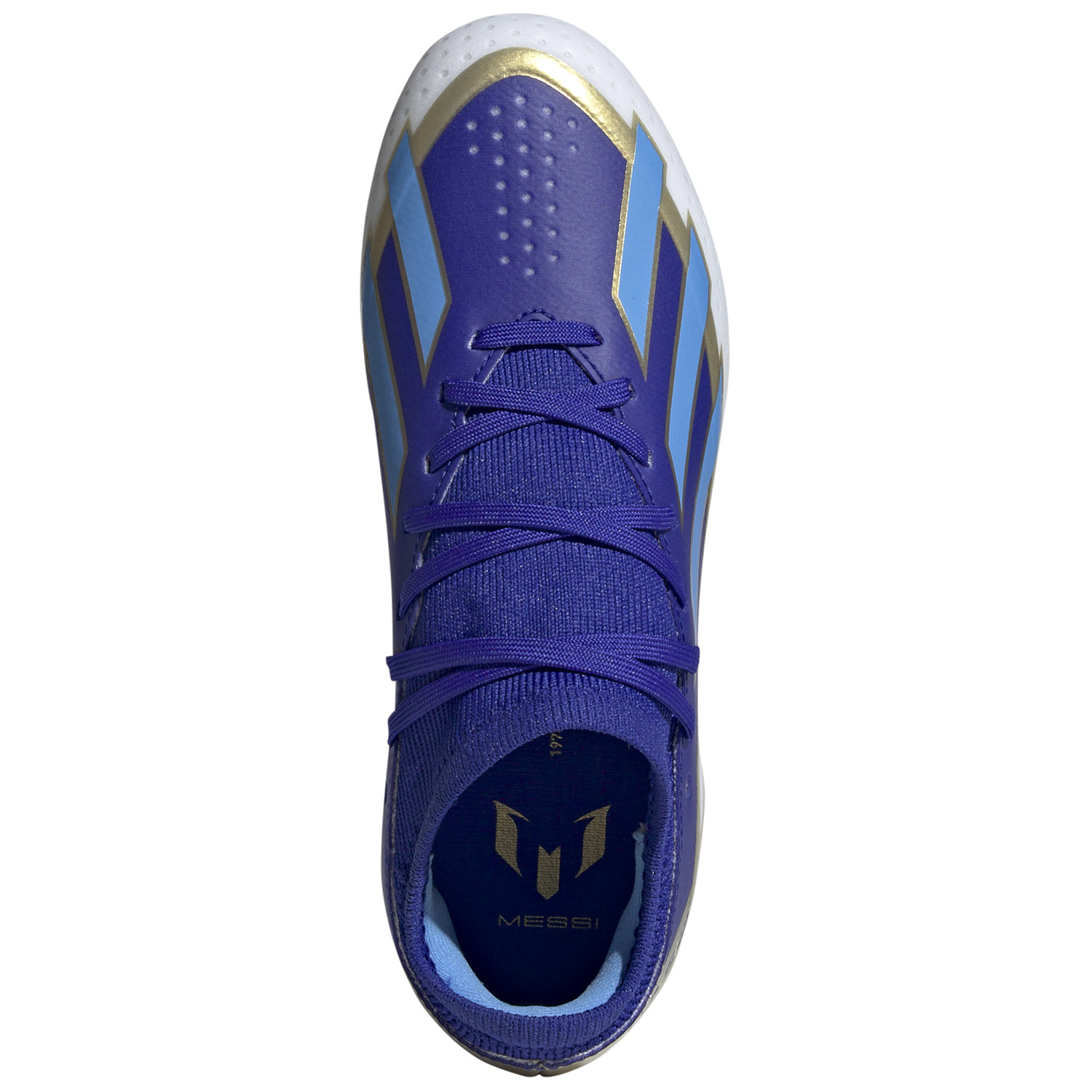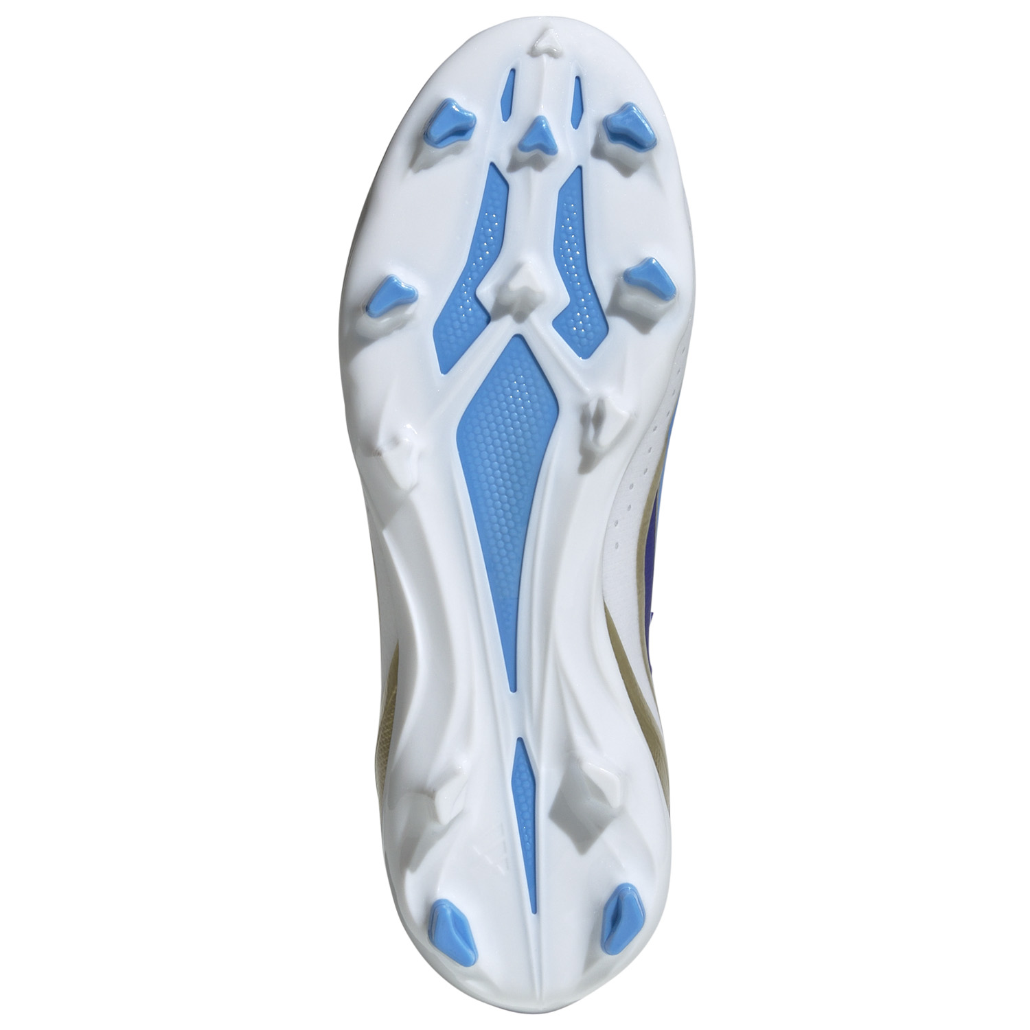 Customized with Lionel Messi details throughout, welcome the adidas Youth Lionel Messi X Crazyfast League FxG Soccer Cleats (Lucid Blue/Blue Burst/Football White/Gold.) Premium soft, lightweight synthetic leather upper for comfort and quality touch on the ball. Combined with an abrasion-resistant outsole built for grip and handling, these soccer shoes will excel on matchday.