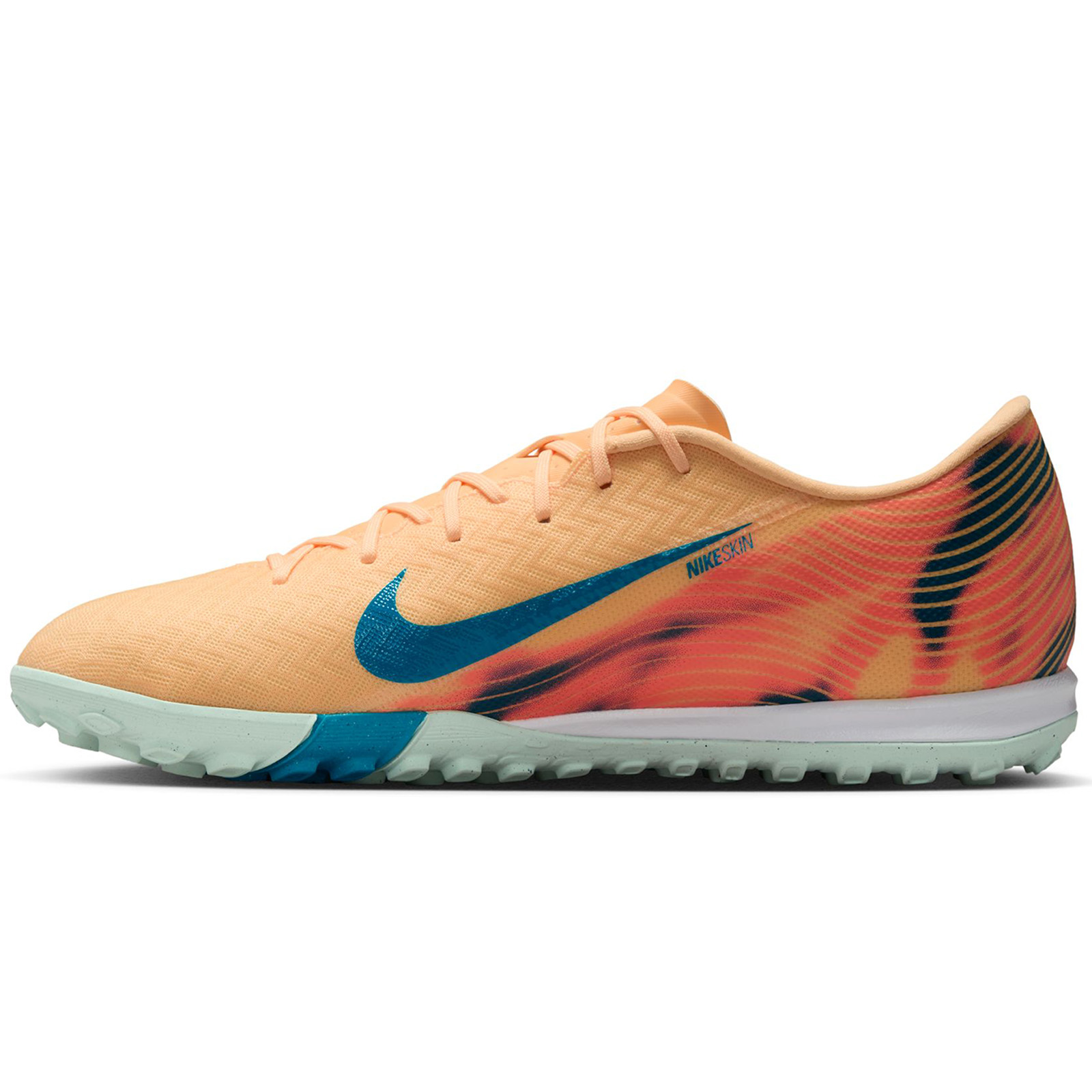 Bold new pattern coupled with energetic functionality, the Nike Zoom Mercurial Vapor 16 Academy Turf Soccer Shoes (Melon Tint/Igloo/Neo Turquoise) features the revolutionary Zoom Air unit and ultra-flexible NikeSkin upper!