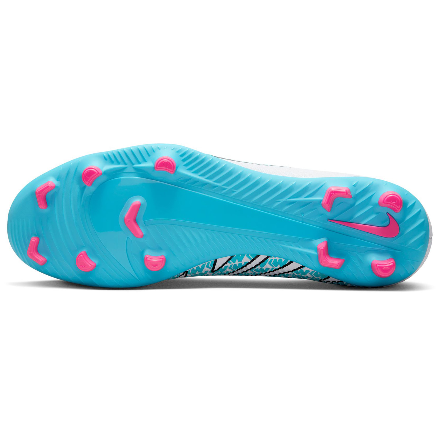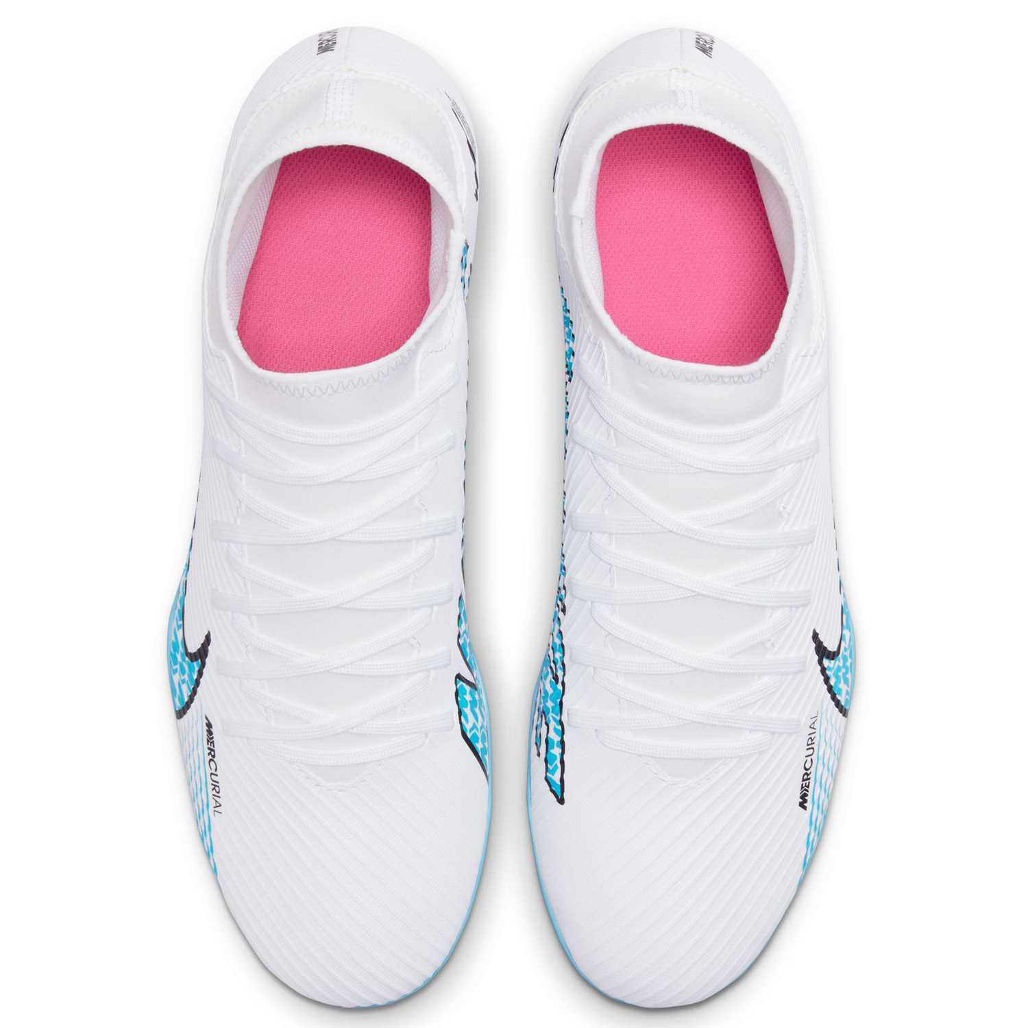 Speed is in the air. Bold new concept coupled with active efficiency, the Nike Mercurial Superfly 9 Club FG/MG Soccer Cleats (White/Pink Blast/Baltic Blue) element an improved ultra-thin NikeSkin upper overlay with a lightweight, comfy collar to lock your foot in for good!