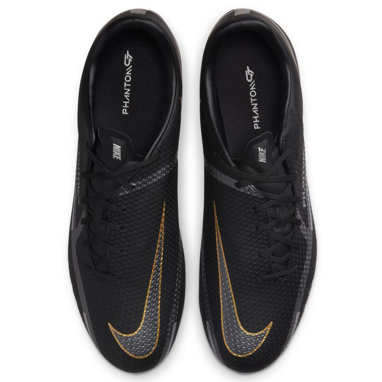 Accuracy meets agility in the new Nike Phantom GT2 Academy FG/MG Soccer Shoes (Black/Metallic Gold/Metallic Silver.) Engineered with power precision in mind, the off-center lacing provides a clean strike zone for focused kicks while the raised pattern throughout helps create optimal ball control.