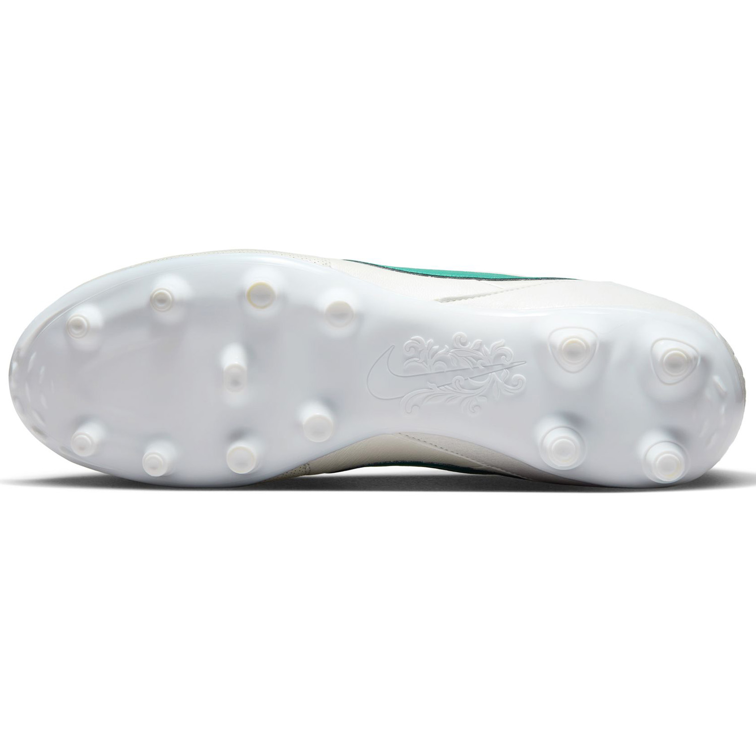 The Nike Premier III Firm Ground Soccer Shoe (Metallic White Summit/Mystic Green) boasts a timeless layout and the functionality you are looking for all wrapped up in one package. Featuring a soft, supple leather upper and a conical stud firm ground outsole, these shoes are made to provide the comfort you need and the touch you require on matchday.