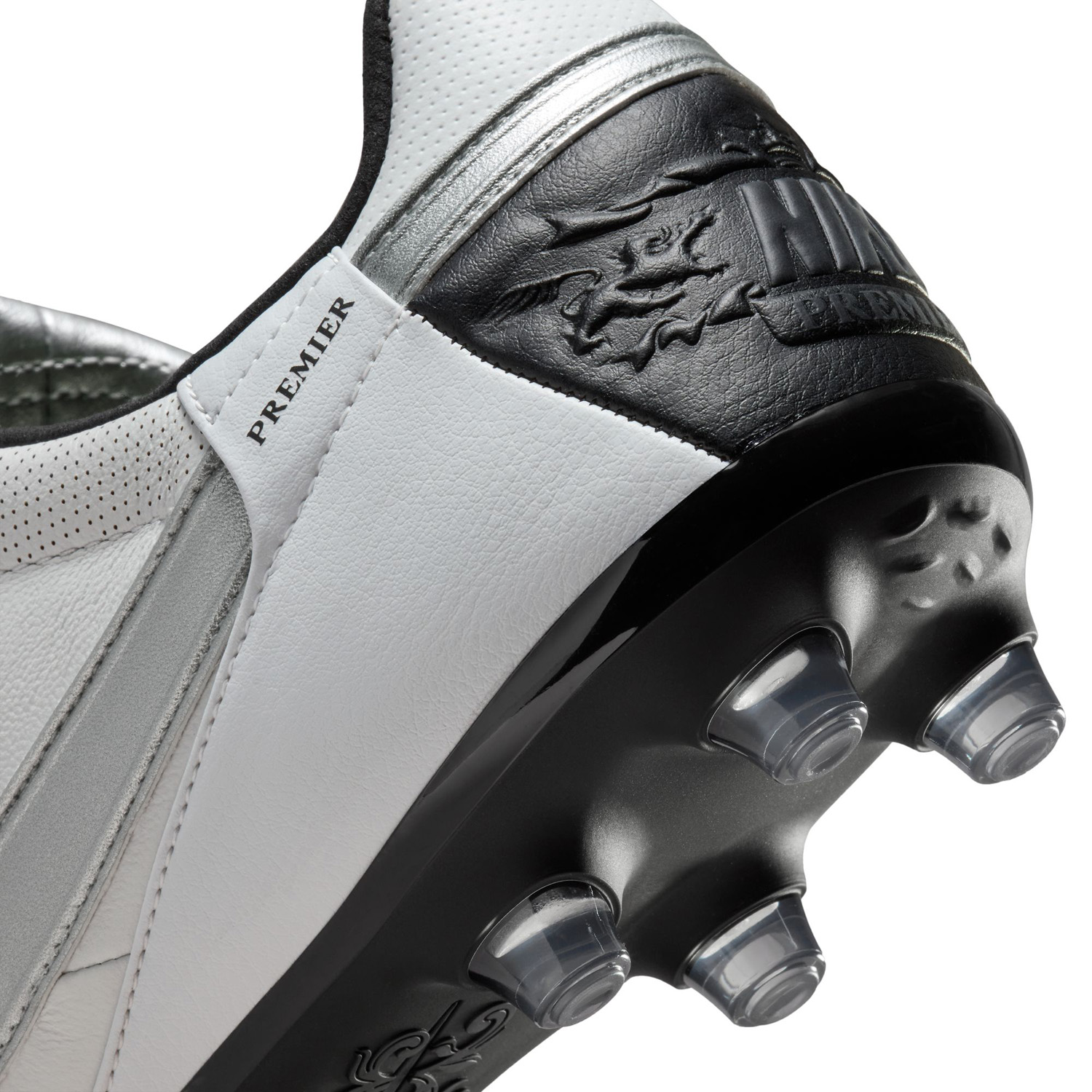 The Nike Premier III Firm Ground Soccer Shoe (Photon Dust/Black/Metallic Silver) includes a vintage design and the capability you are looking for all wrapped up in one package. Featuring a soft, supple leather upper and a conical stud firm ground outsole, these shoes are made to provide the comfort you need and the touch you require on matchday.