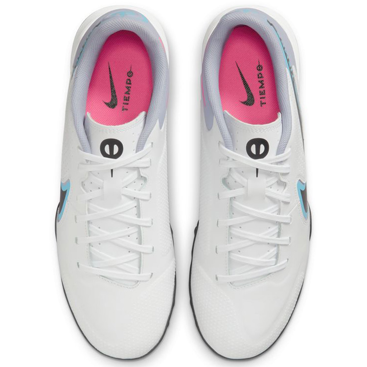 Building on the innovation of its predecessors, the Nike Tiempo Legend 9 Academy Turf Soccer Shoe (White/Pink Blast/Baltic Blue) possesses multi-directional traction for razor sharp cuts at the highest speeds on artificial turf and dry, natural surfaces. A supersoft, uber-comfy natural leather upper reinforced with soft foam pods elevates your passing and shooting accuracy on matchday!