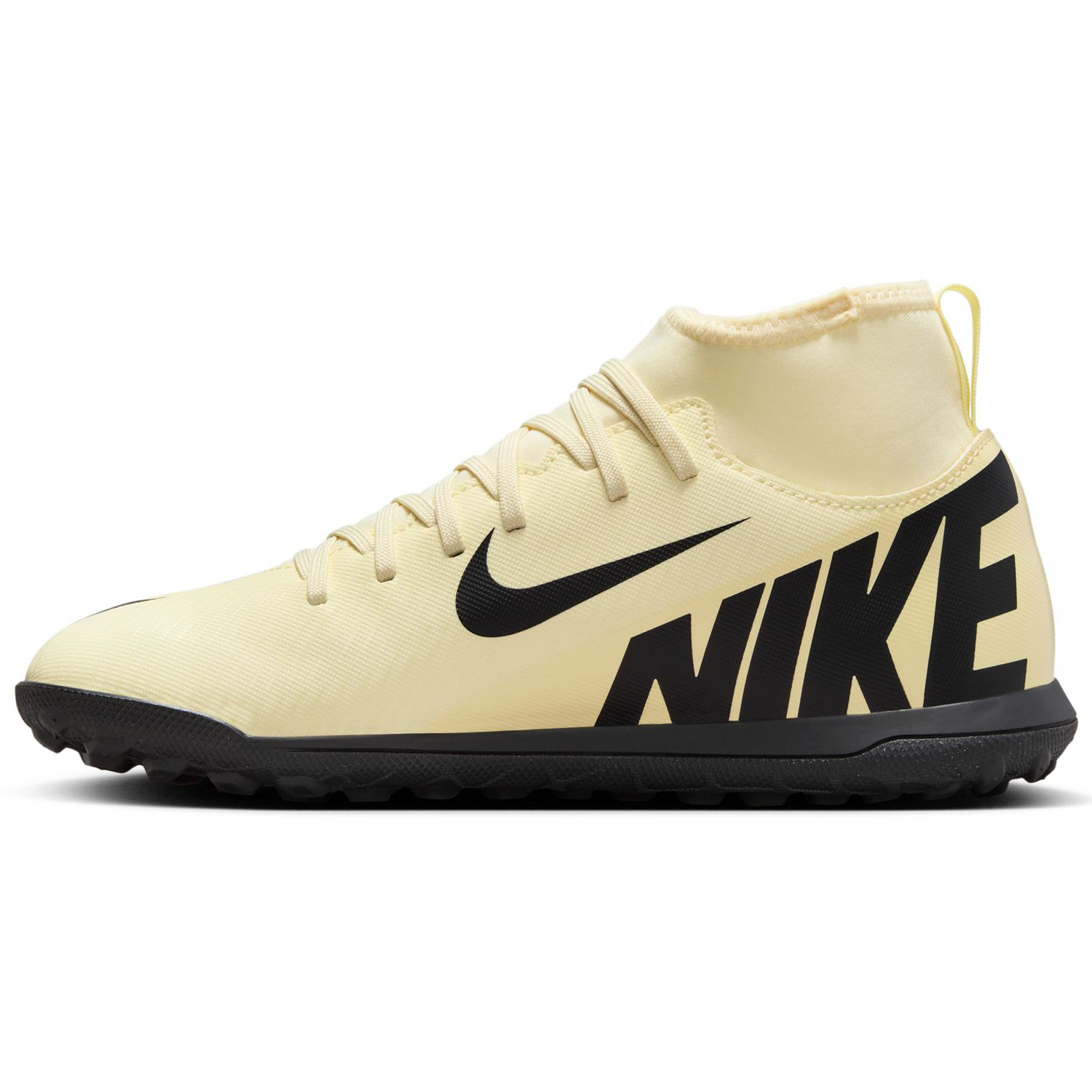 The Nike Youth Mercurial Superfly 9 Club Turf (Lemonade/Black/Metallic Gold Coin) boasts a comfy, stretchy collar for a seamless fit with lightweight cushioning. Combining a grippy textured upper surface and a multi-directional turf outsole which furnishes traction for razor sharp cuts, even the youngest players can dominate the turf pitch!