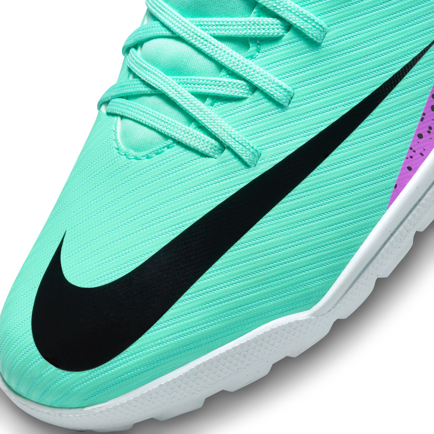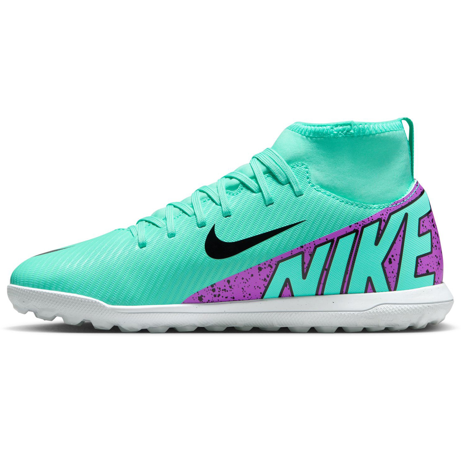 The Nike Youth Mercurial Superfly 9 Club Turf (Hyper Turquoise/Black/White/Fuchsia Dream) boasts a comfy, stretchy collar for a seamless fit with lightweight cushioning. Combining a grippy textured upper surface and a multi-directional turf outsole which supplies traction for razor sharp cuts, even the youngest players can dominate the turf pitch!