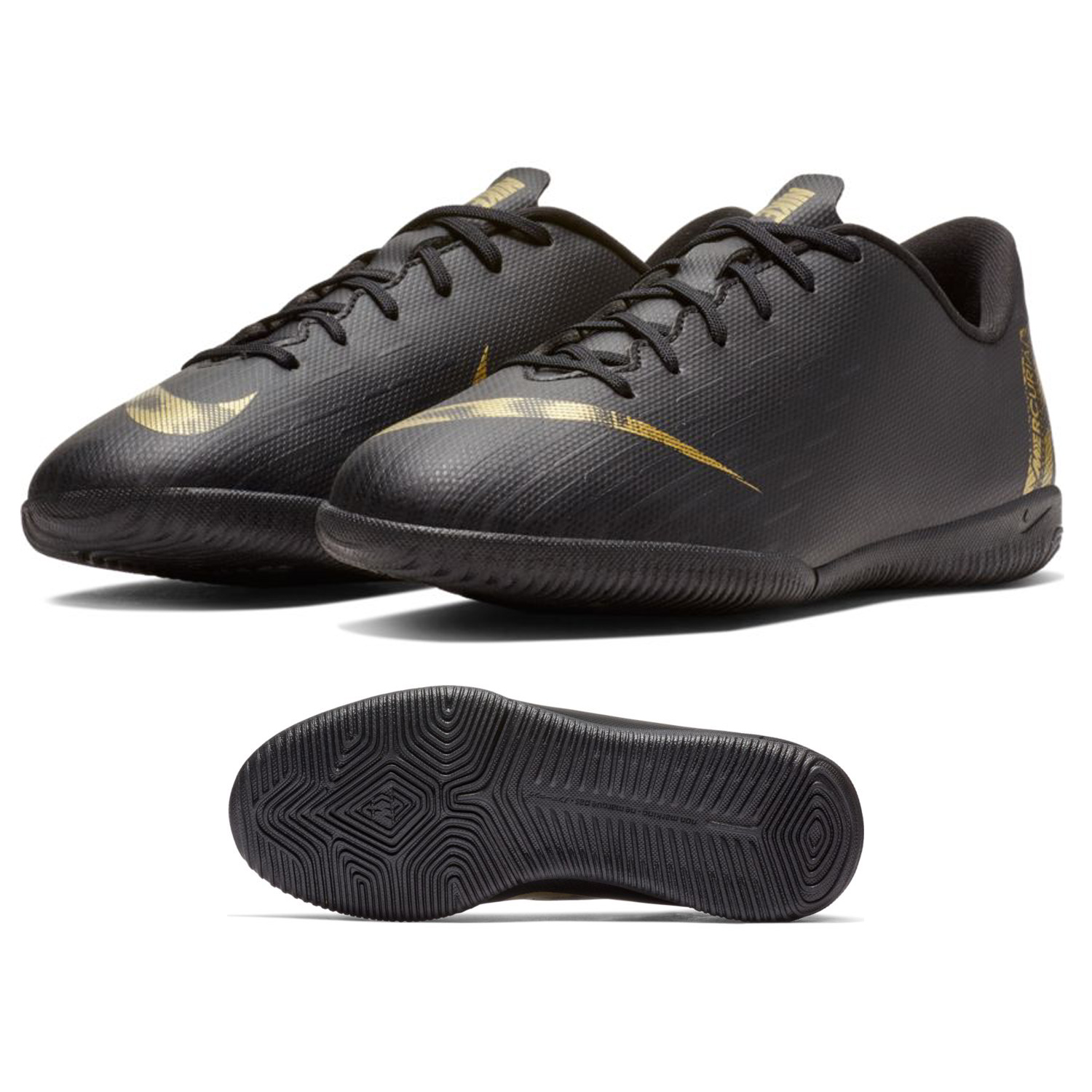 The soft, synthetic leather upper of the Nike Youth MercurialX Vapor XII Academy Indoor Soccer Shoe wraps your foot for a snug fit straight out of the box. The long-lasting rubber outsole provides responsive traction on indoor/court surfaces right when you need it.