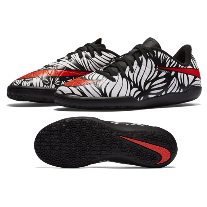 The Nike Youth Neymar HyperVenom Phelon II Indoor Soccer Shoe is built to provide superior agility on indoor surfaces with a snug fit. Built with attacking players in mind, the asymmetrical lace area increases the size of the sweet spot for a better performance on gameday. These shoes trait a unique concept inspired by the one and only Neymar!