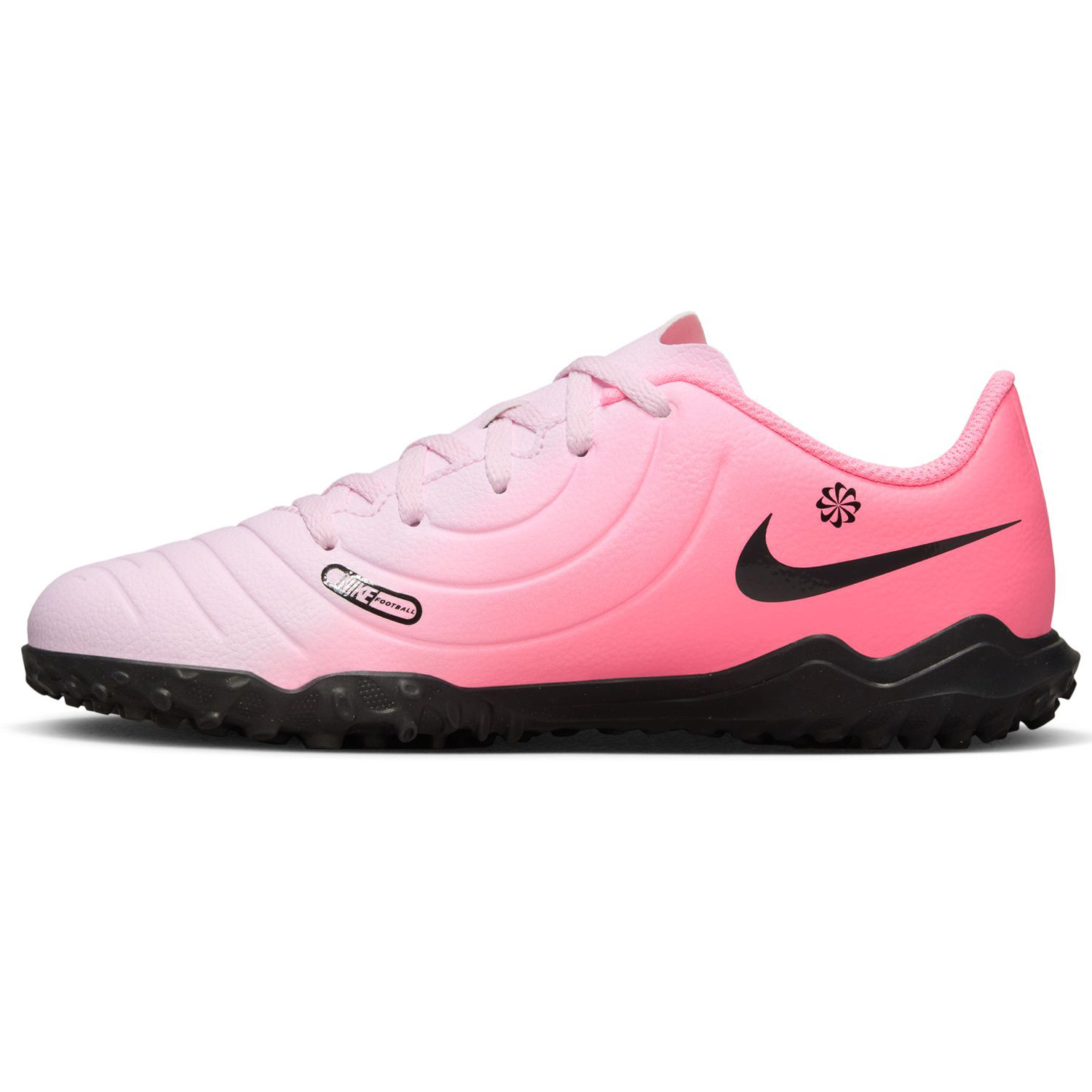 Step into football footwear functionality with the Nike Youth Tiempo Legend 10 Club Turf Soccer Shoe (Sunset Pink/Black)! Featuring soft, synthetic engineered leather for an excellent touch on the ball. These comfortable and chic turf soccer shoes are the perfect option to dominate the pitch on the matchday!