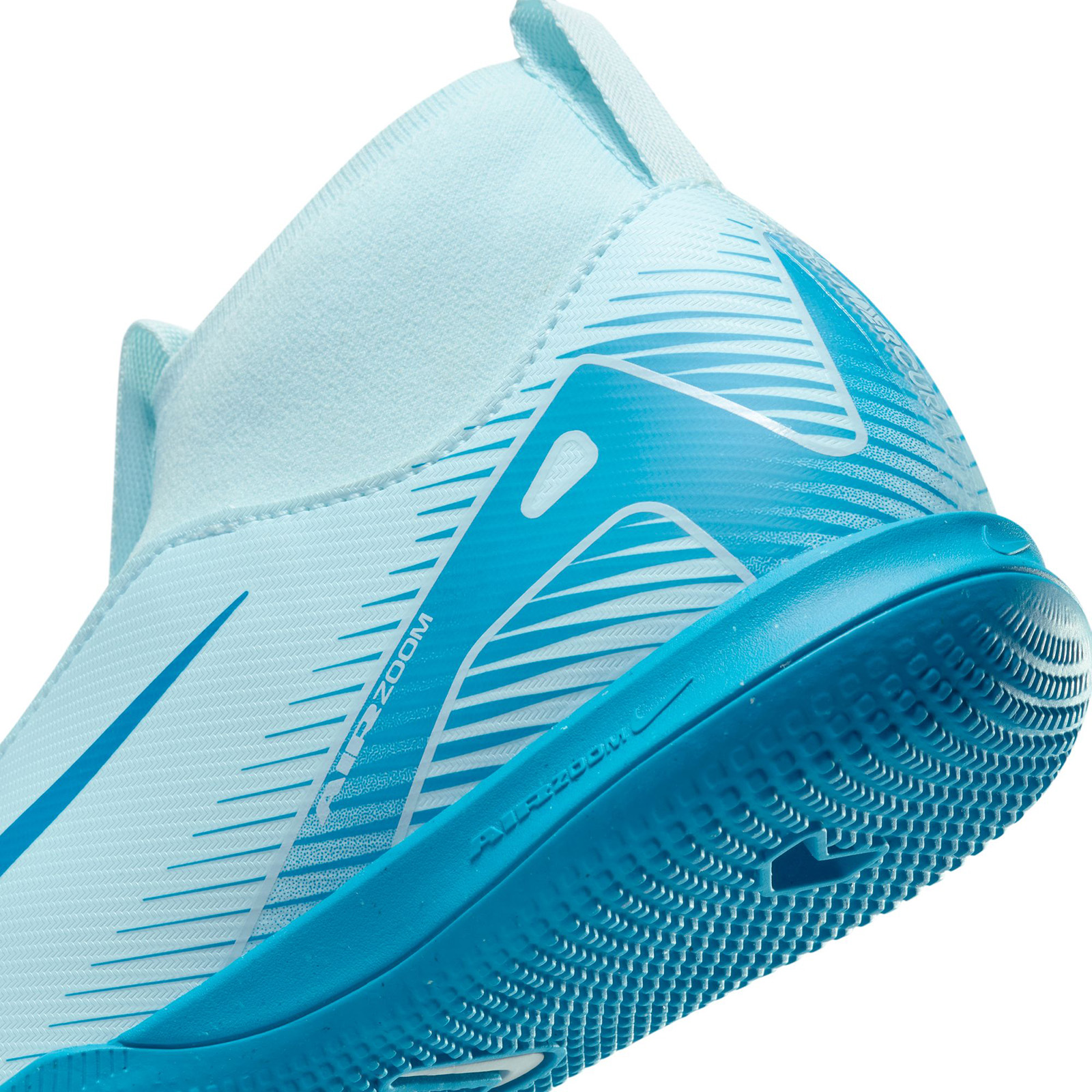 Speed is in the air. Bold new design coupled with dynamic performance, the Nike Youth Zoom Mercurial Superfly 10 Academy Indoor Shoes (Glacier Blue/Blue Orbit) features an improved ultra-thin NikeSkin upper overlay with a revolutionary Zoom Air unit!