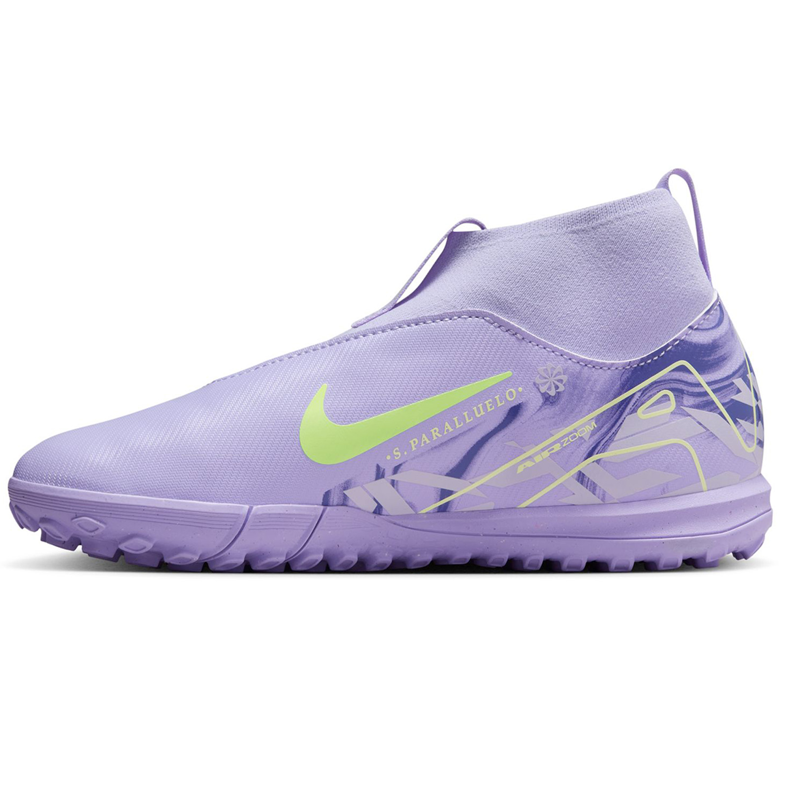 Speed is in the air. Bold new structure coupled with lively performance, the Nike Youth Zoom Mercurial Superfly 10 Academy Turf Soccer Shoes (Purple Agate/Barely Volt) includes an improved ultra-thin NikeSkin upper overlay with a revolutionary Zoom Air unit!