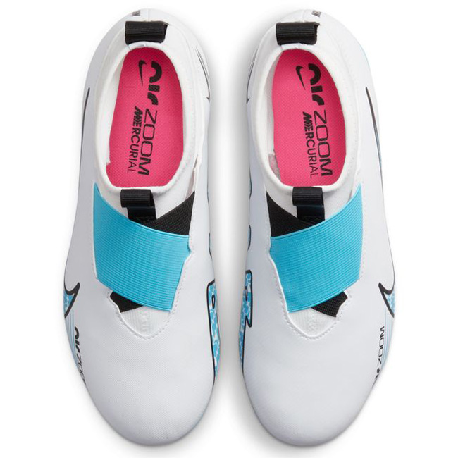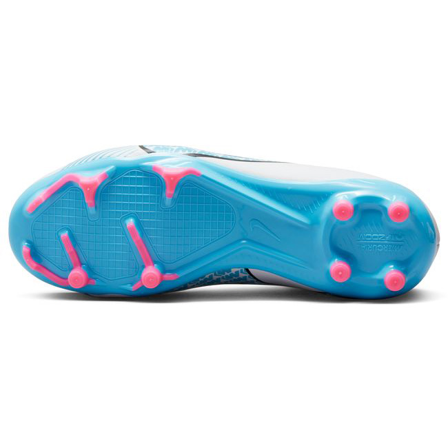Speed is in the air. Bold new concept coupled with dynamic performance, the Nike Youth Zoom Mercurial Superfly 9 Academy FG/MG Soccer Cleats (White/Baltic Blue/Pink Blast) has an improved ultra-thin NikeSkin upper overlay with a revolutionary Zoom Air unit!
