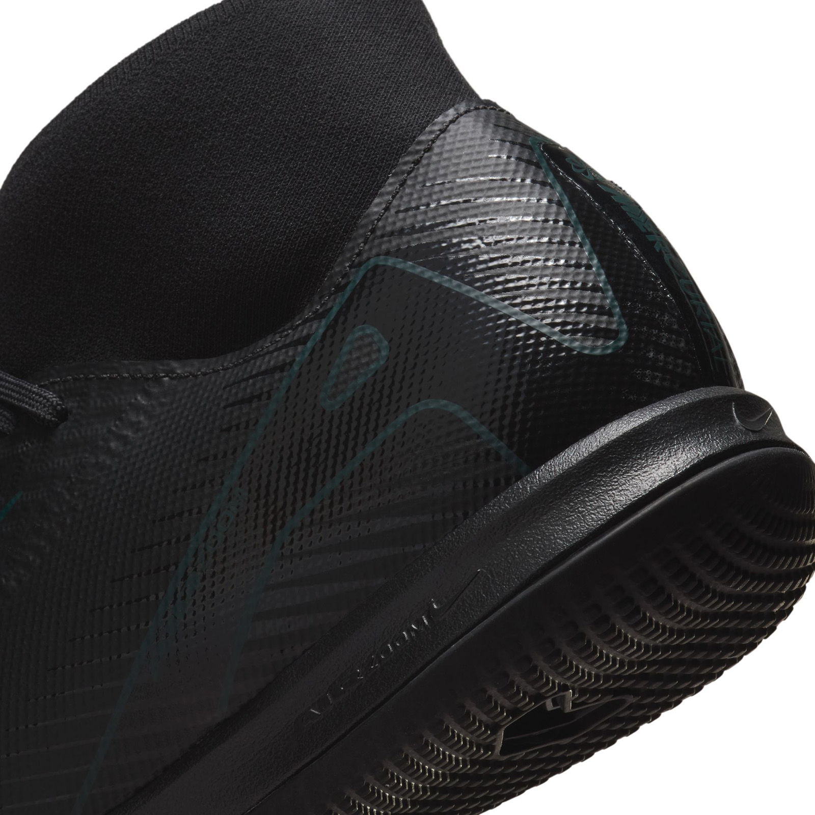 Bold new design coupled with vibrant performance, the Nike Zoom Mercurial Superfly 10 Academy Indoor Soccer Shoes (Black/Deep Jungle) boasts an improved supportive Flyknit ankle collar with a revolutionary Zoom Air unit and ultra-flexible NikeSkin upper!