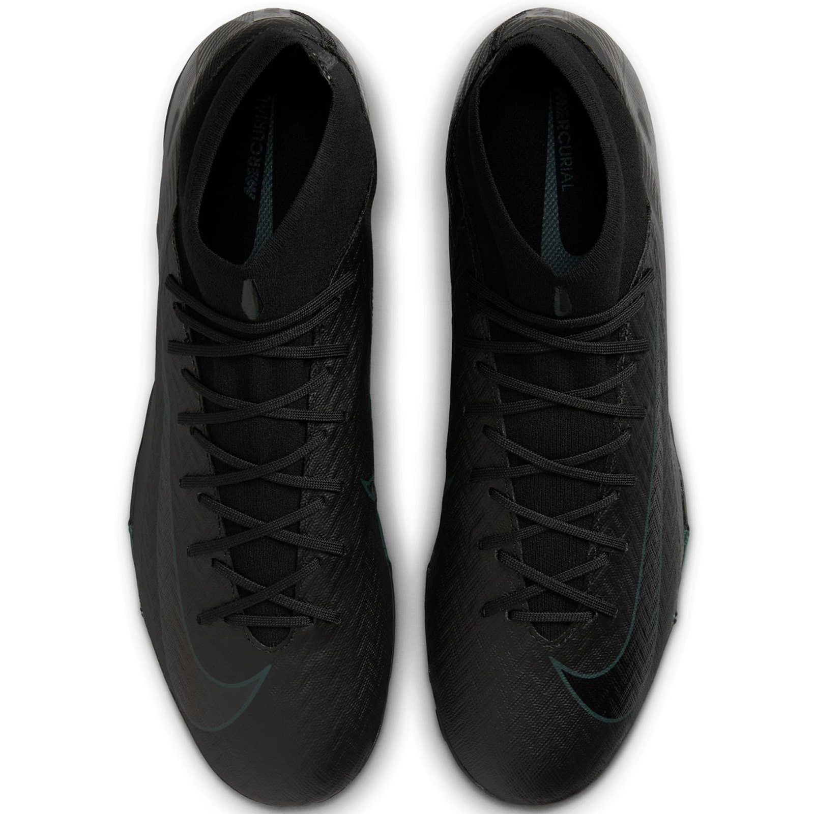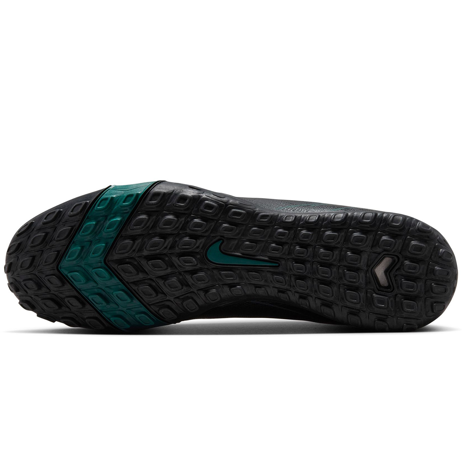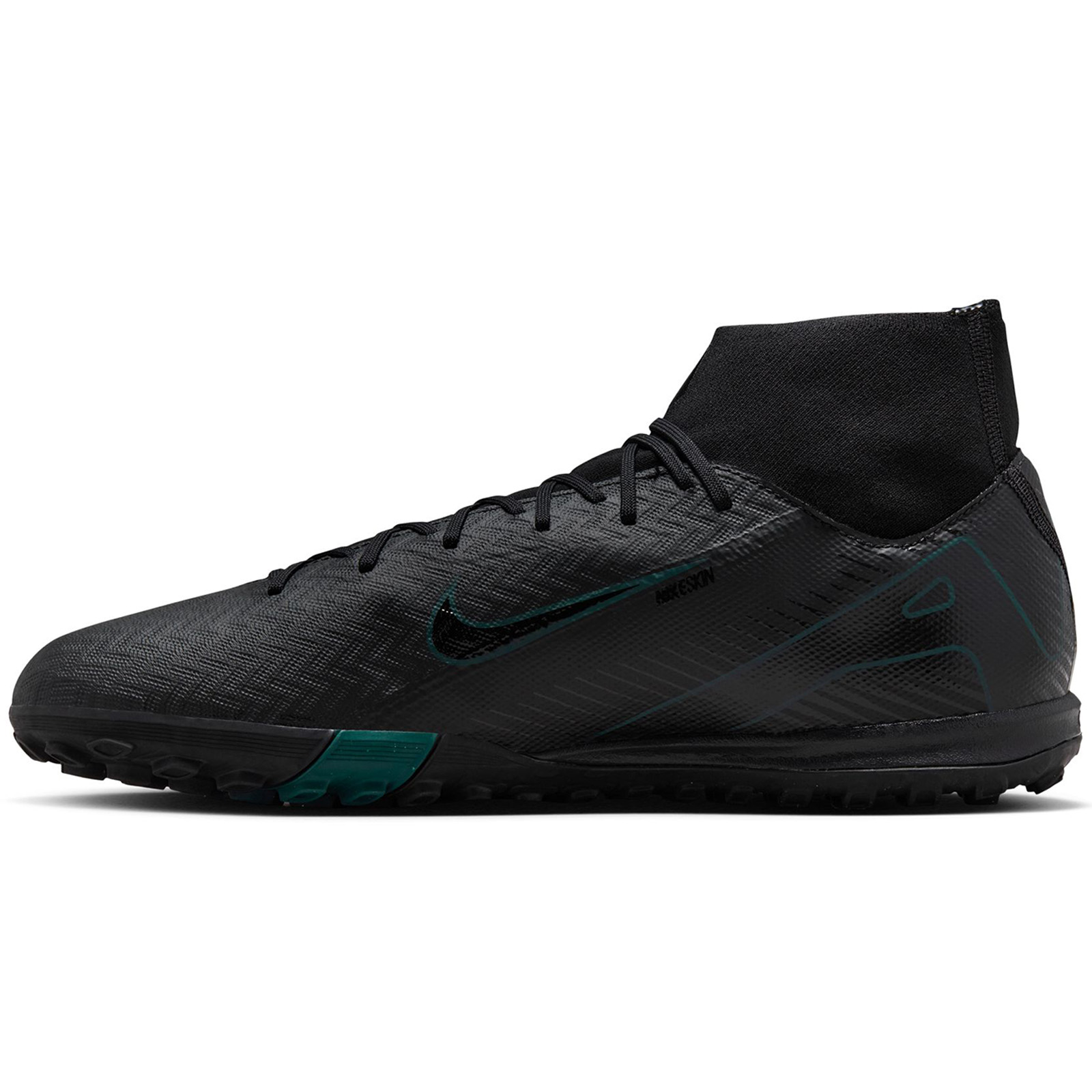 Bold new design coupled with dynamic efficiency, the Nike Zoom Mercurial Superfly 10 Academy Turf Soccer Shoes (Black/Deep Jungle) contains an improved supportive Flyknit ankle collar with a revolutionary Zoom Air unit and ultra-flexible NikeSkin upper!