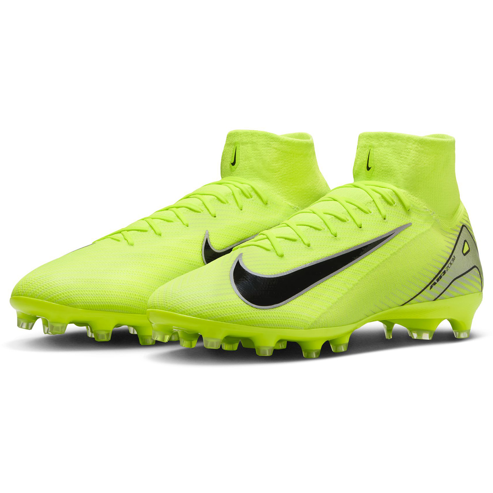 Bold new concept coupled with dynamic performance, the Nike Zoom Mercurial Superfly 10 Pro AG Soccer Shoes (Volt/Black) possesses an improved supportive Flyknit ankle collar with a revolutionary Zoom Air unit and a full Flyknit upper, engineered for speed!