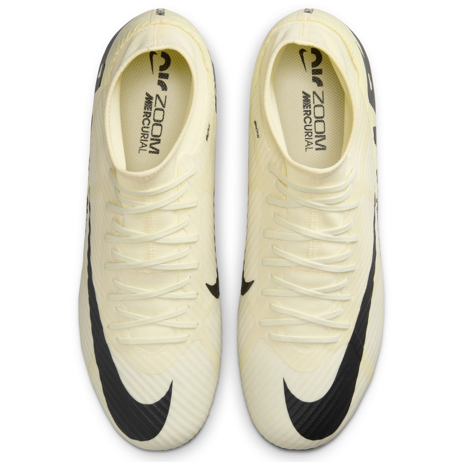 Bold new layout coupled with active execution, the Nike Zoom Mercurial Superfly 9 Academy FG / MG Soccer Shoes (Lemonade/Black) includes an improved supportive Flyknit ankle collar with a revolutionary Zoom Air unit and ultra-flexible NikeSkin upper!