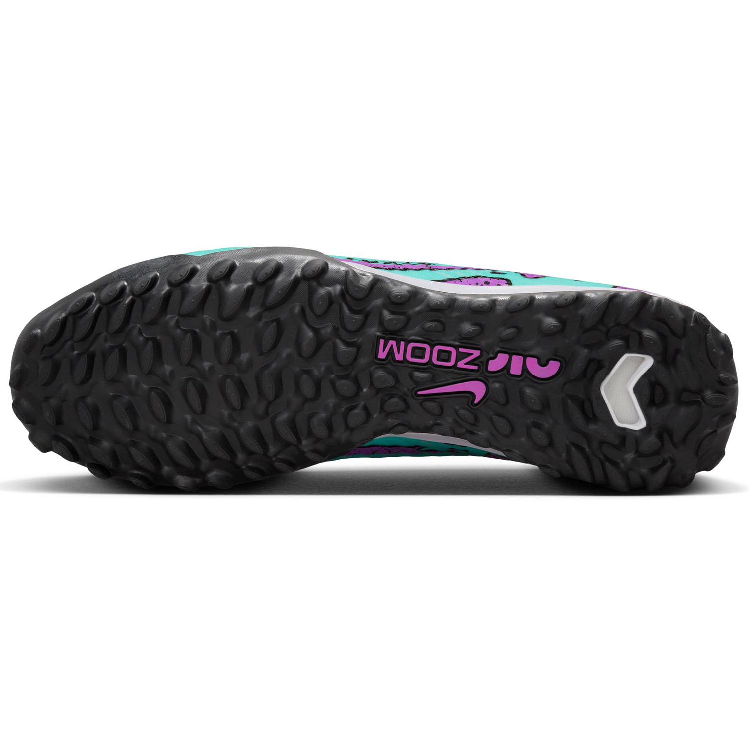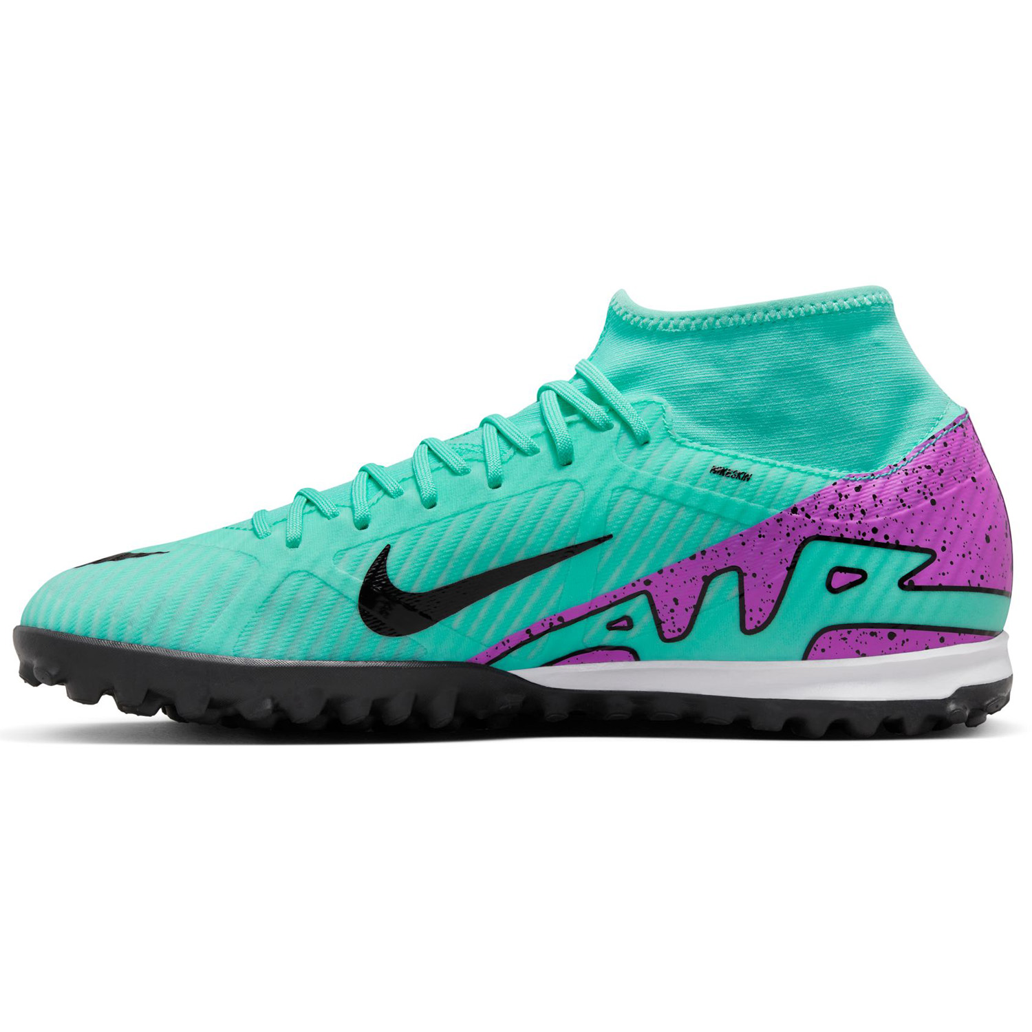 Featuring a futuristic look, these novel Nike Zoom Mercurial Superfly 9 Academy Turf Soccer Shoes (Hyper Turquoise/Black/White/Fuchsia Dream) feature a comfy ankle collar with a rubber outsole to provide traction for razor sharp cuts and sudden starts and stops!