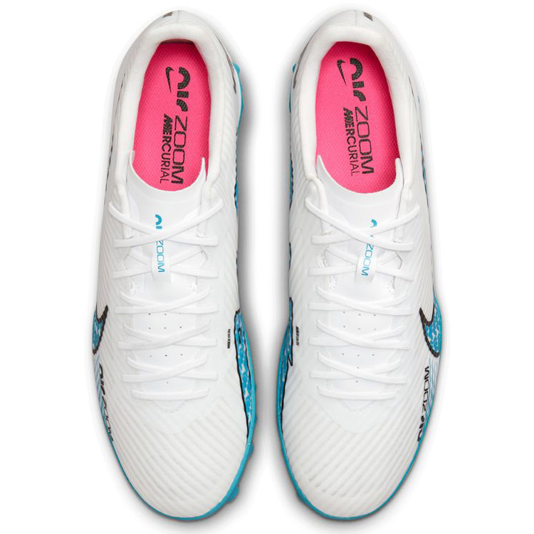 Bold new design coupled with dynamic performance, the Nike Zoom Mercurial Vapor 15 Academy Turf Soccer Shoes (White/Baltic Blue/Pink Blast) boasts a revolutionary Zoom Air unit and ultra-flexible NikeSkin upper. Boasting bold design details and coming full loaded with a speed cage skeleton, this soccer boot is easy on the eyes and heaven on your feet!