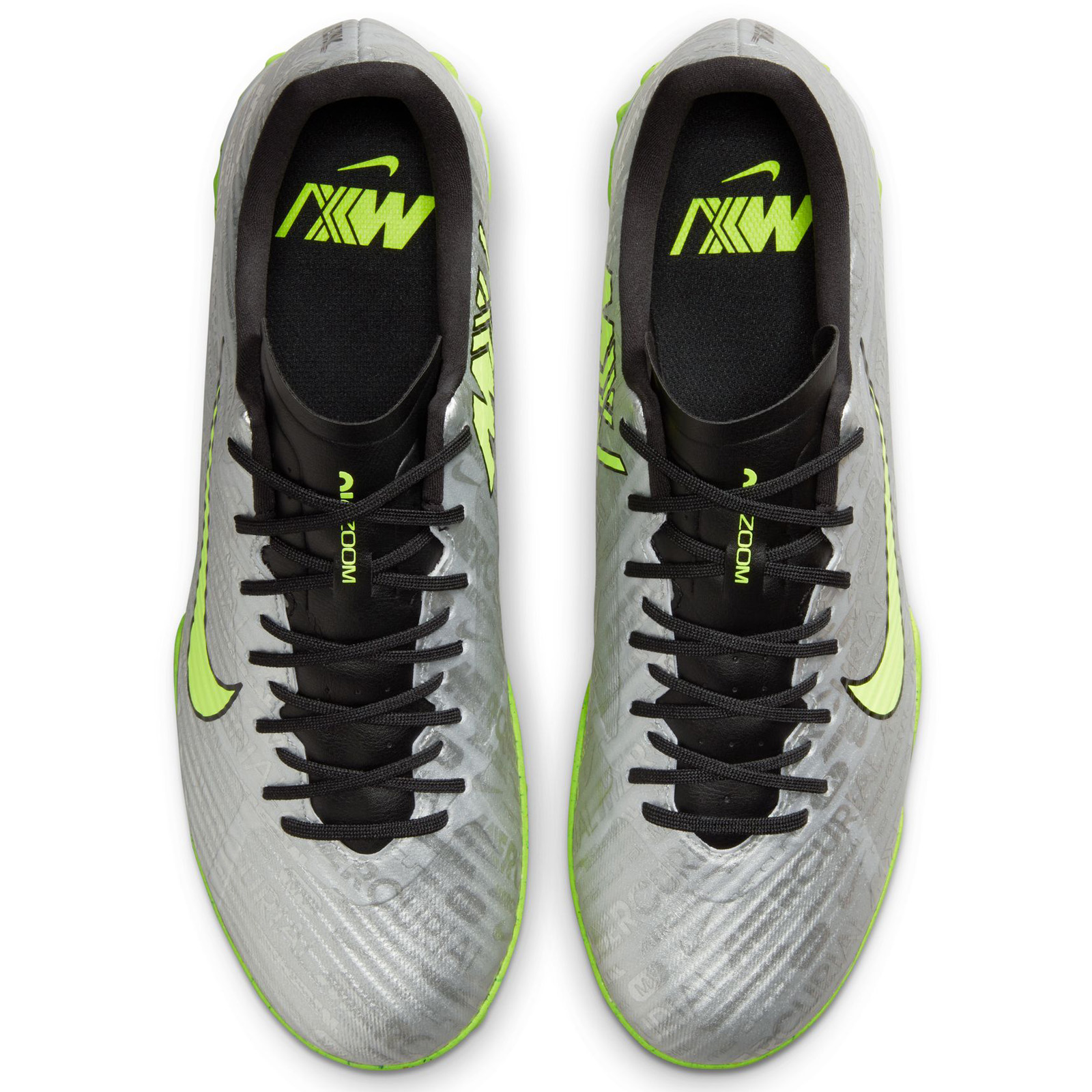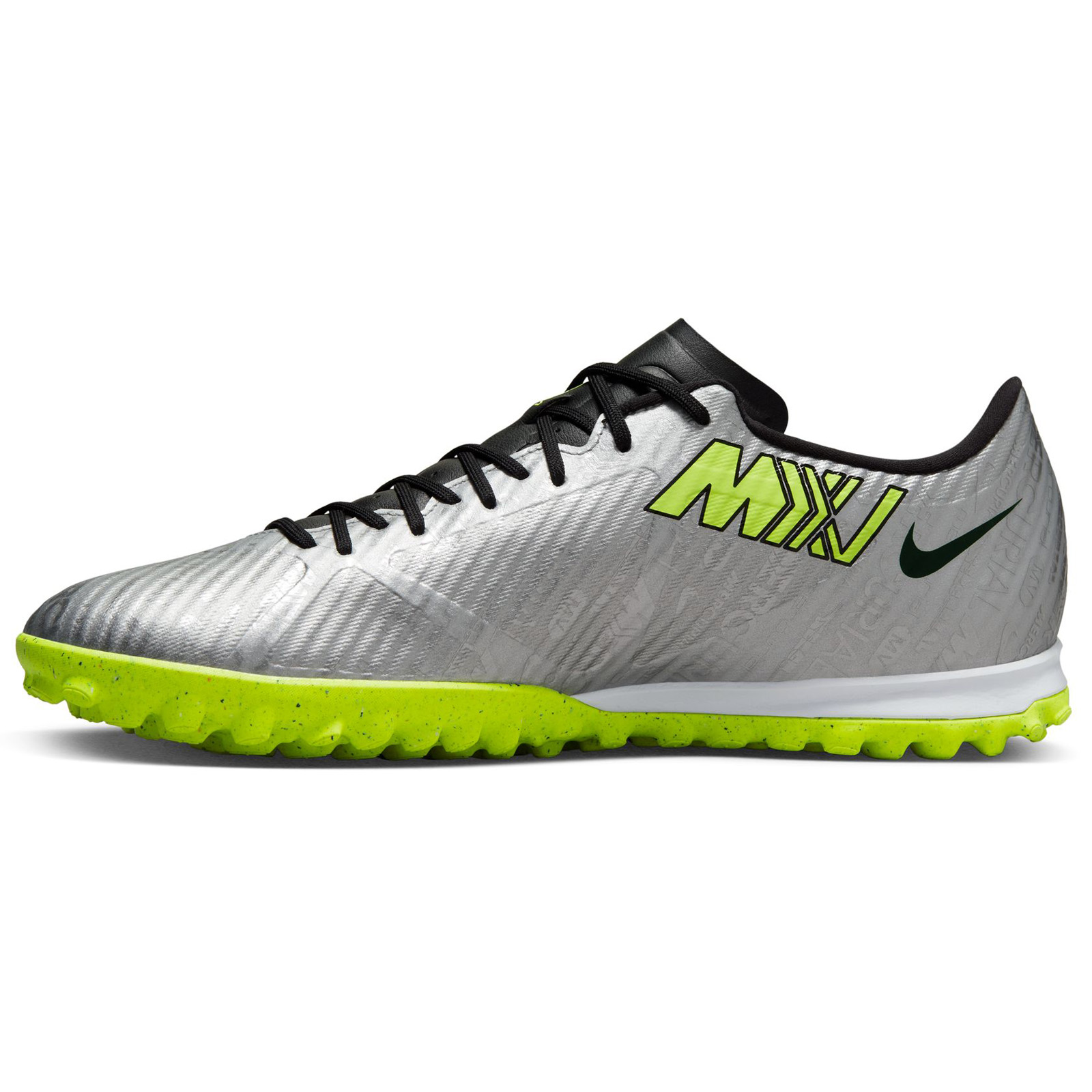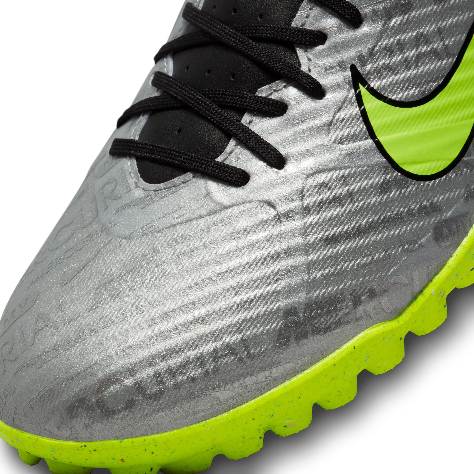 Celebrate the 25th anniversary of bold new style coupled with vibrant capability in the Nike Zoom Mercurial Vapor 15 Academy Turf XXV Soccer Shoes (Metallic Silver/Black/Volt)! Featuring a revolutionary Zoom Air unit and ultra-flexible NikeSkin upper, bold style details and a fully loaded speed cage skeleton, this turf soccer boot is easy on the eyes and heaven on your feet!